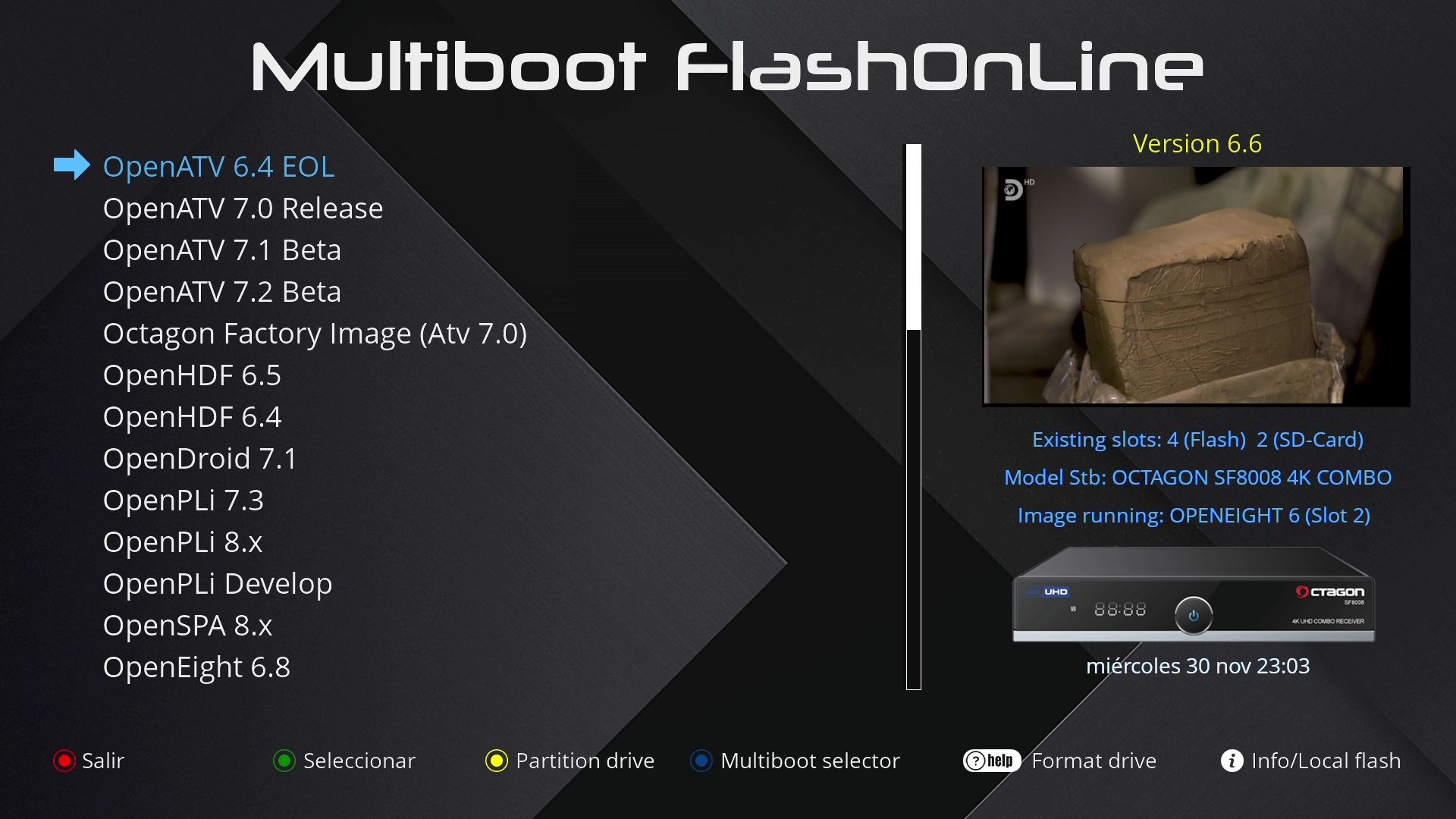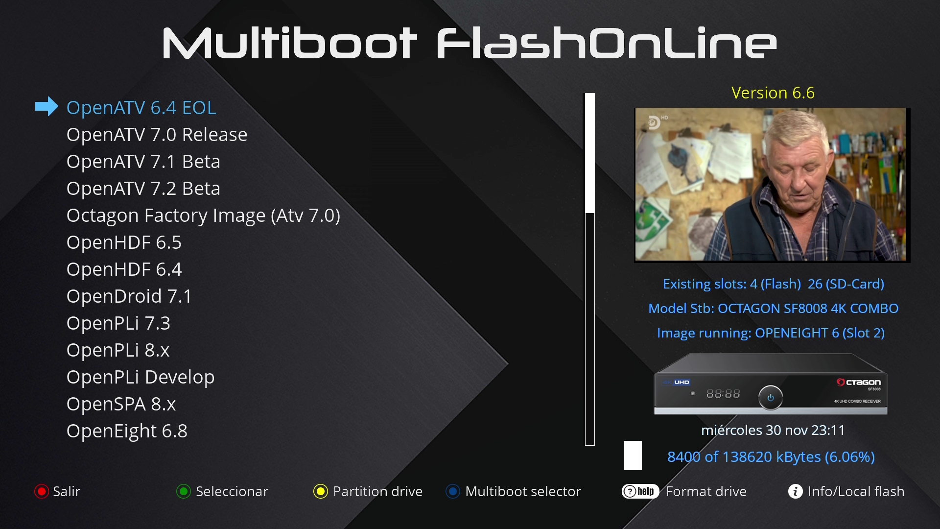 Multiboot FlashOnline para receptores enigma2 es una utilidad que permite la partición de una microSD o usb para gestionar la instalacion de diversas imagenes en las particiones realizadas.