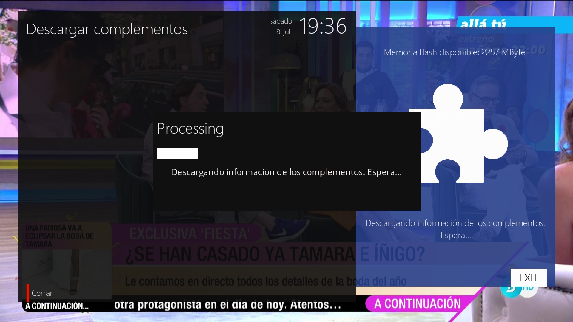 - Ahora nos aparece al acceder al menu complementos barra progreso hasta que el mismo ha cargado los paquetes disponibles.
