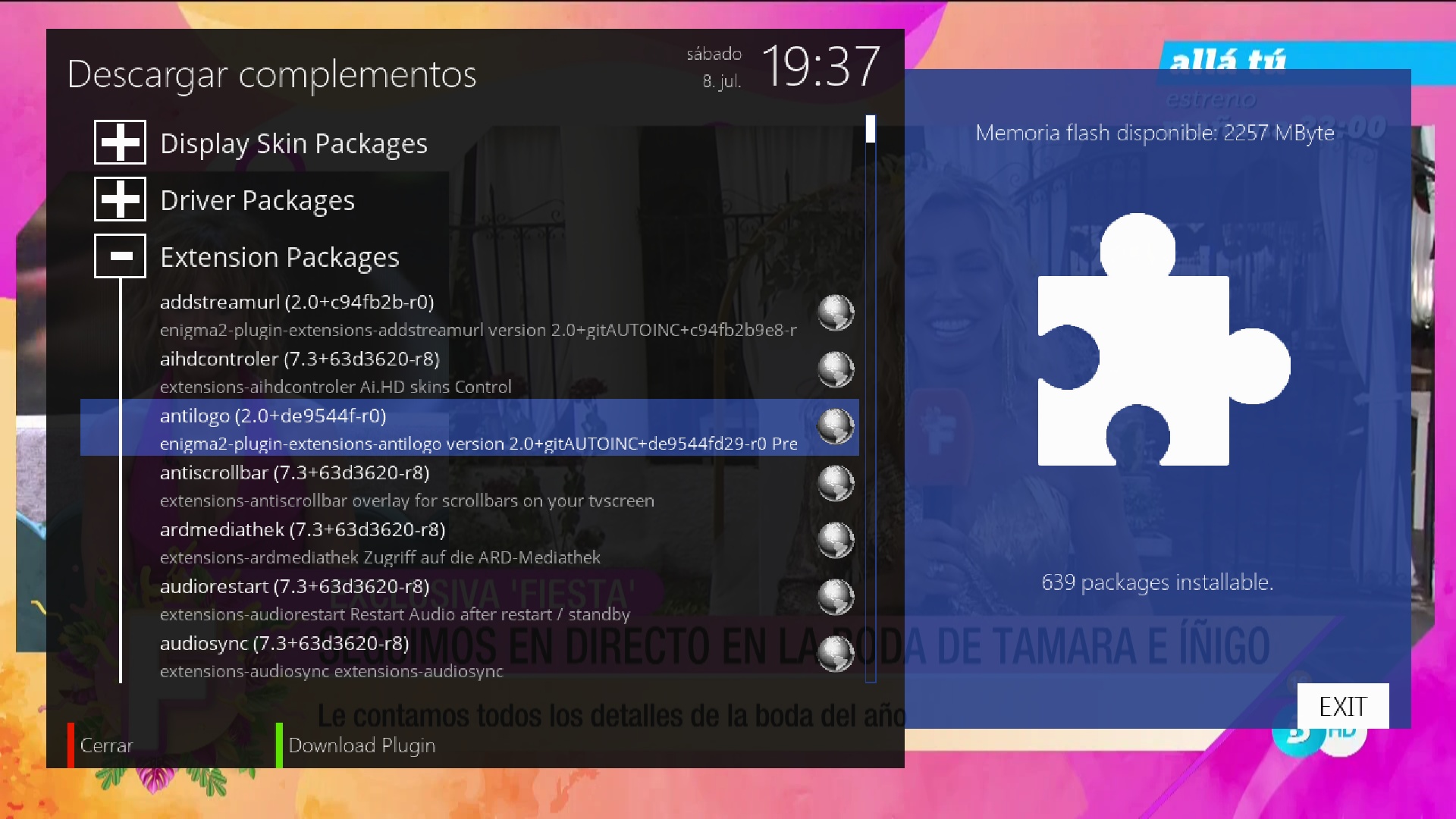 OpenATV para algunos receptores enigma2 ha sacado una actualizacion Devel para que se pueda probar por anticipado una actualización del menu Complementos, basicamente te actualiza los repositorios de la imagen y te hace un upgrade de ciertas partes de la imagen, que te posibilita tener este complemento asi como otros que puedan aparecer para probar y testear.