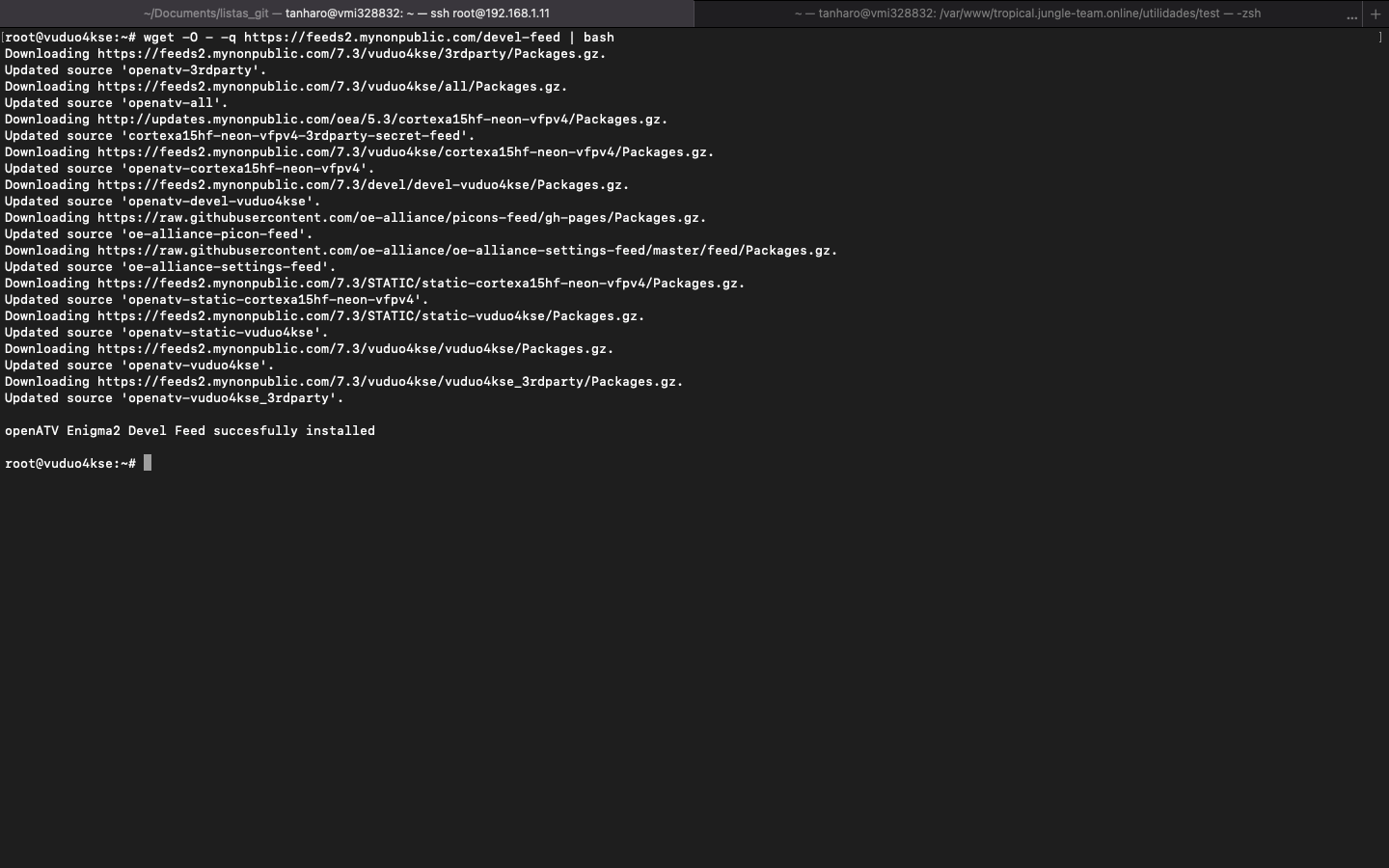 Este primer comando nos realizara una actualizacion de los repositorios de la imagen y luego nos hara una actualizacion (opkg update) de la lista de paquetes del receptor.