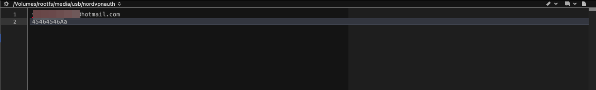 A continuacion creamos en el directorio /media/usb un archivo llamado nordvpnauth lo podemos realizar por comando en terminal ejecutando