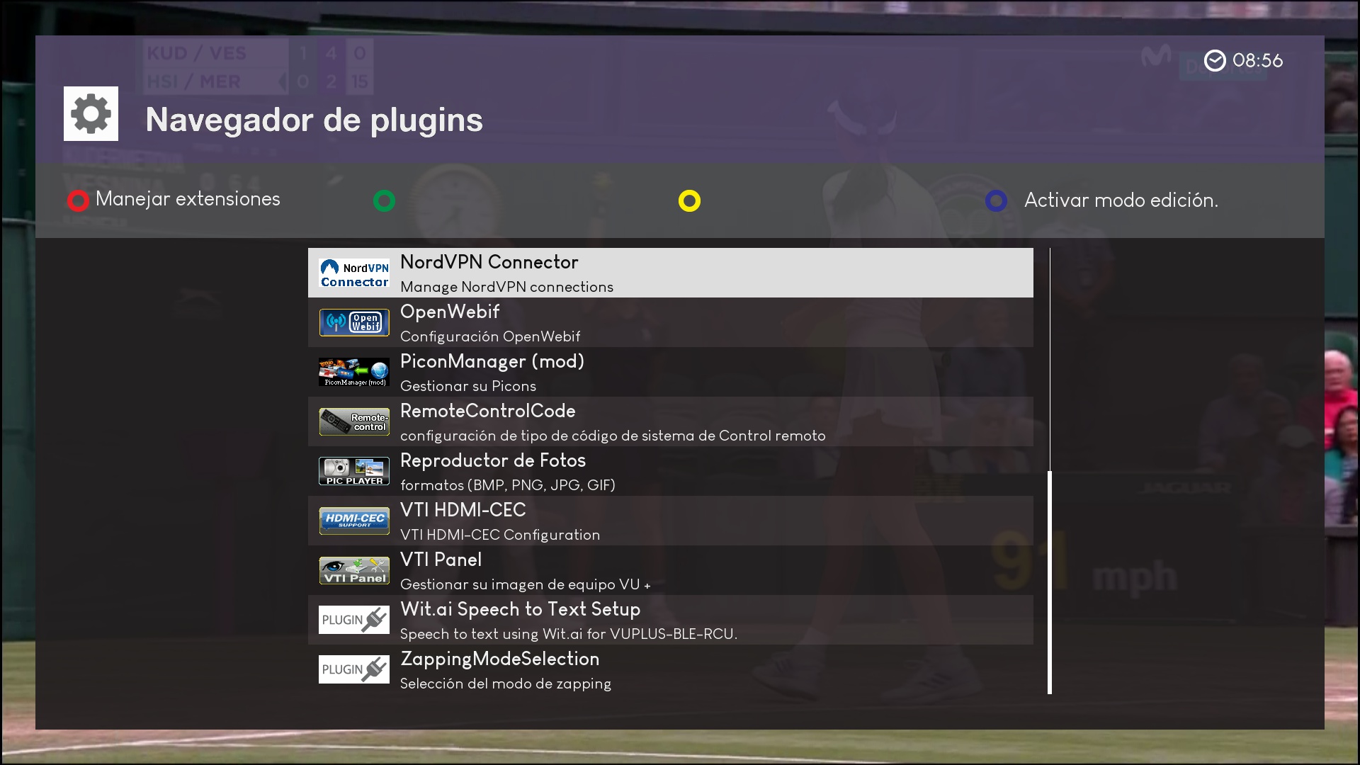 2.1. Tras la instalacion y reinicio del receptor ahora en el menu plugins observaremos que nos aparece NordVPN-Connector