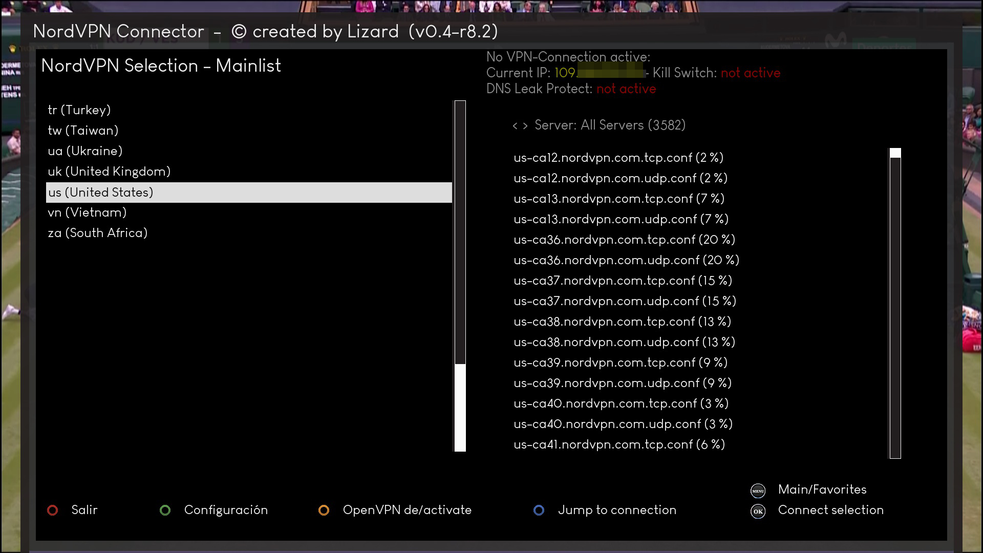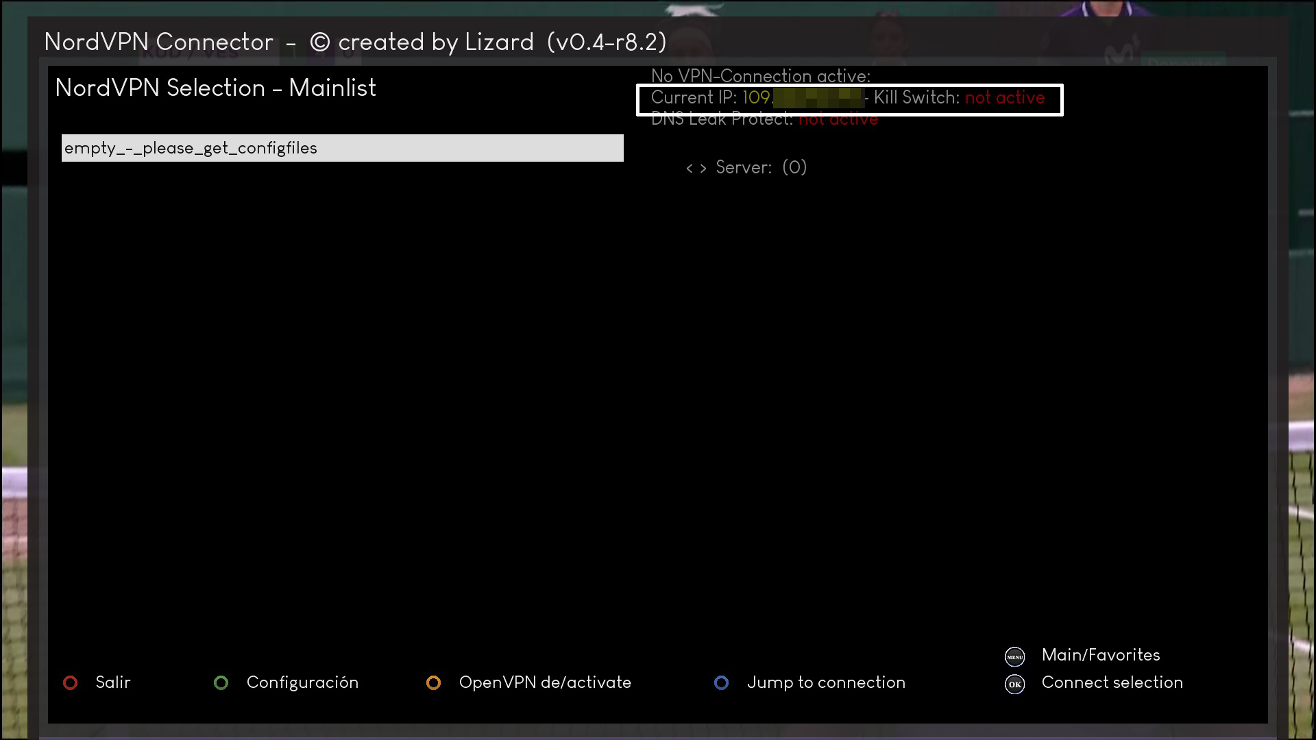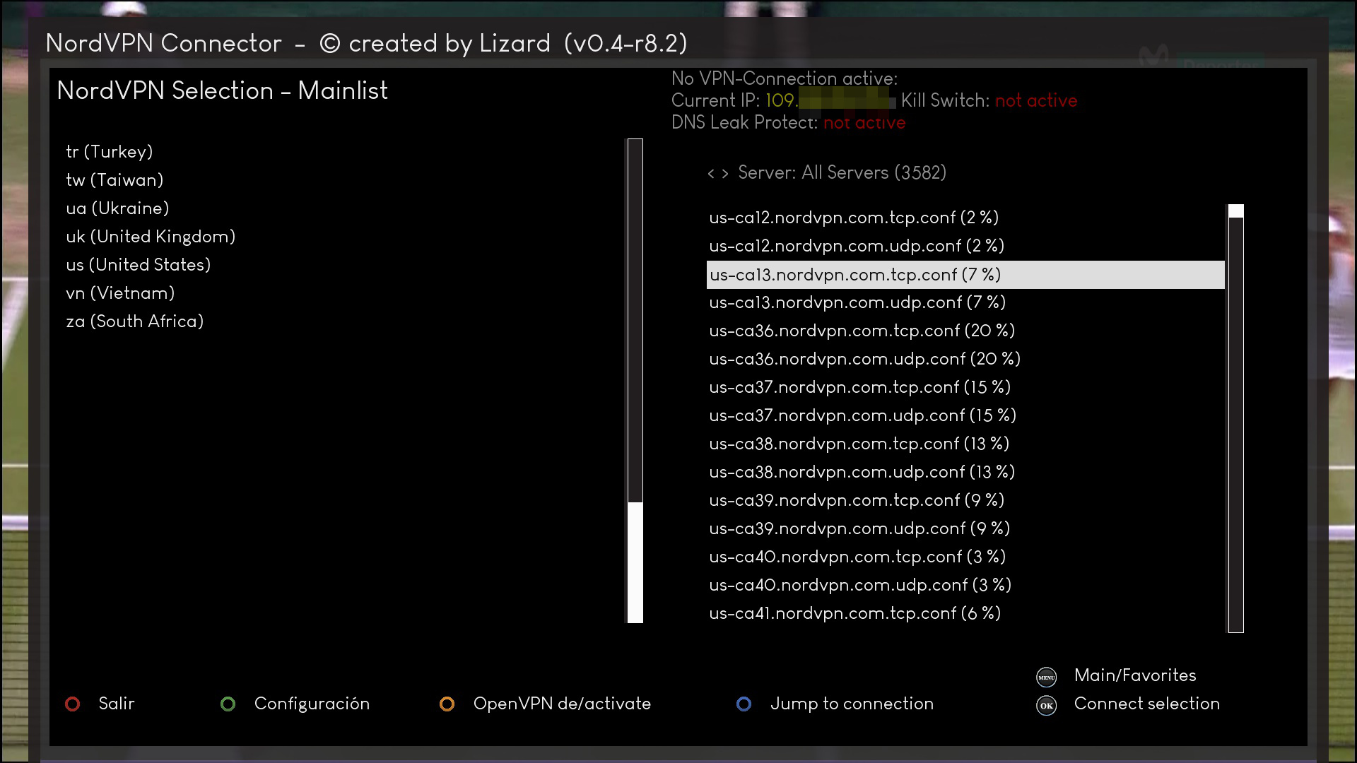 Una vez hemos realizado la instalacion de NordVPN-Connector en nuestro receptor enigma2, ahora vamos a ver como usarlo, comentar que es muy sencillo su uso.