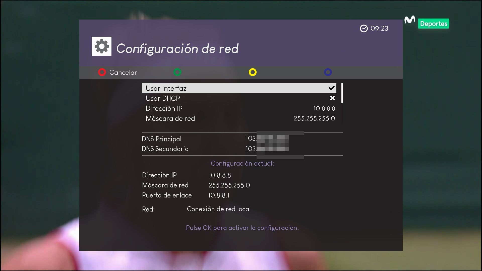 2.4. Una vez que hemos introducido nuestros datos de autentificacion y guardados como se ha indicado ahora volvemos a entrar en el menu de configuracion con boton verde y ya nos apareceran nuestros datos de acceso