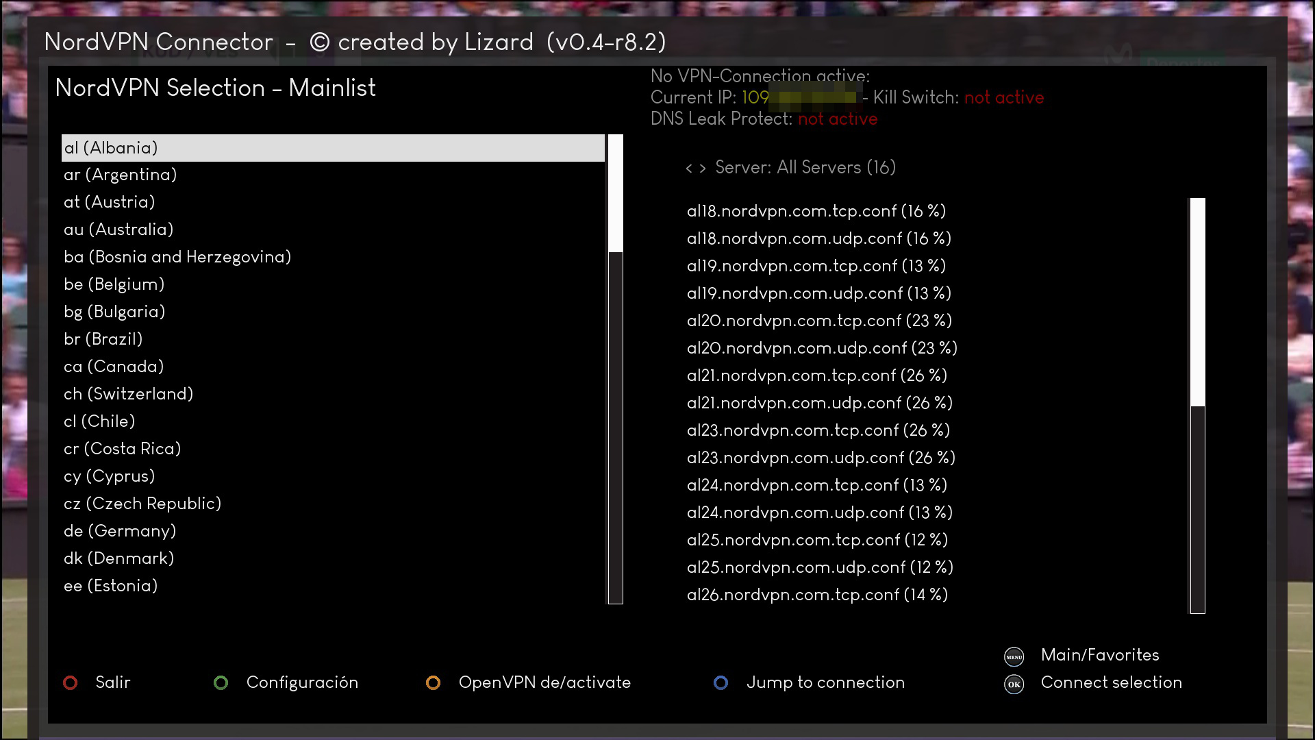 NordVPN-Connector esta disponible para todas las imagenes enigma2, aunque la version a usar puede estar limitada dependiendo la imagen enigma2 que estemos usando. El creador de este plugin es Lizard y este es el hilo oficial de soporte del mismo.