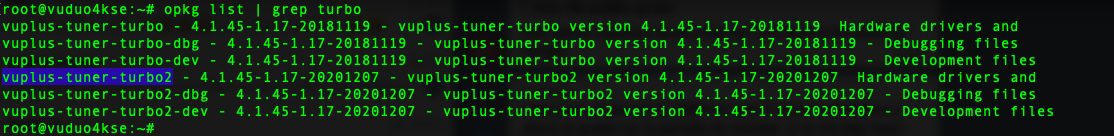 En pruebas realizadas con Vu+ Turbo SE es reconocido perfectamente el mismo automaticamente, una captura de los nuevos drivers: