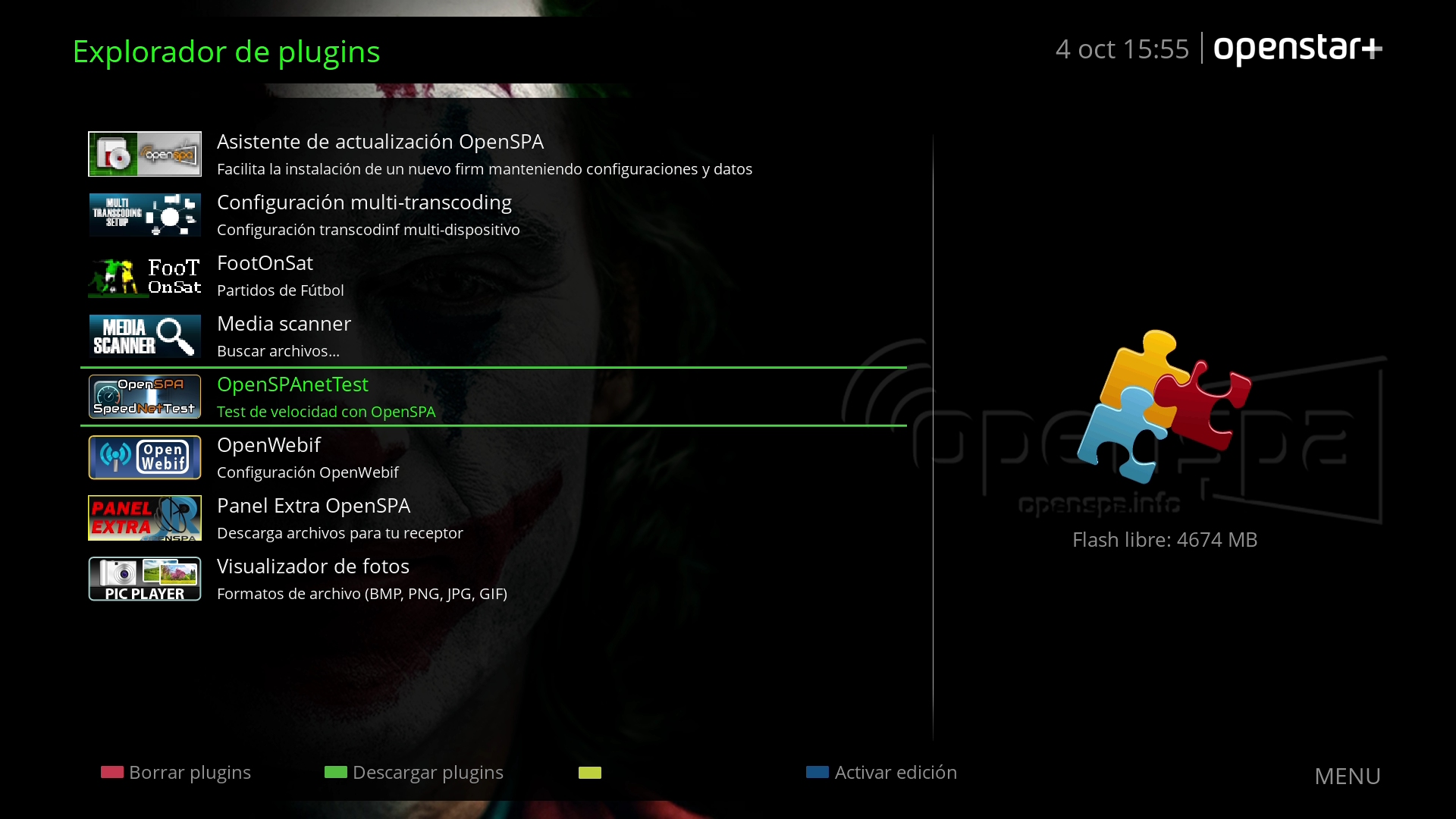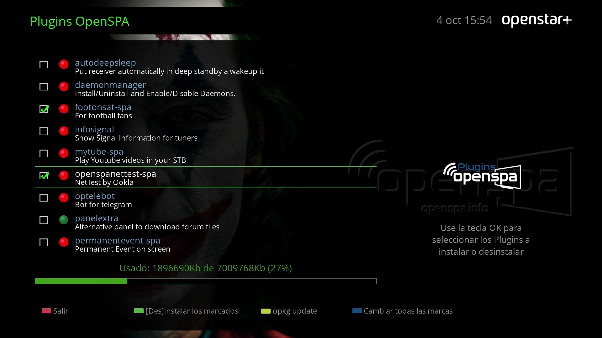 En el test realizado en octagon sf8008 la imagen funciona correctamente, comprobando las actualizaciones realizadas por Openspa, donde podemos comprobar las nuevas versiones de las aplicaciones anteriormente detalladas: