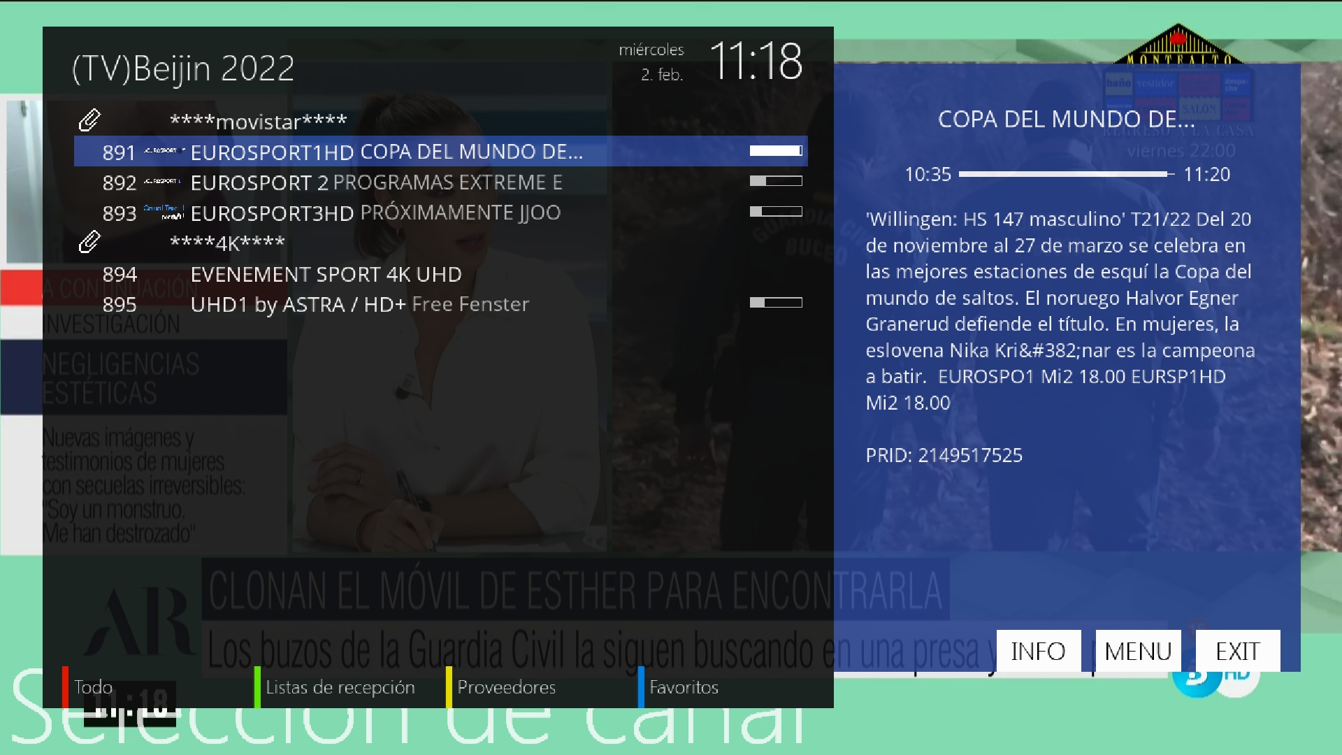 - Añadido favorito Beijing 2022 para canales que emiten en eurosport juegos olimpicos por astra en hd y 4K.