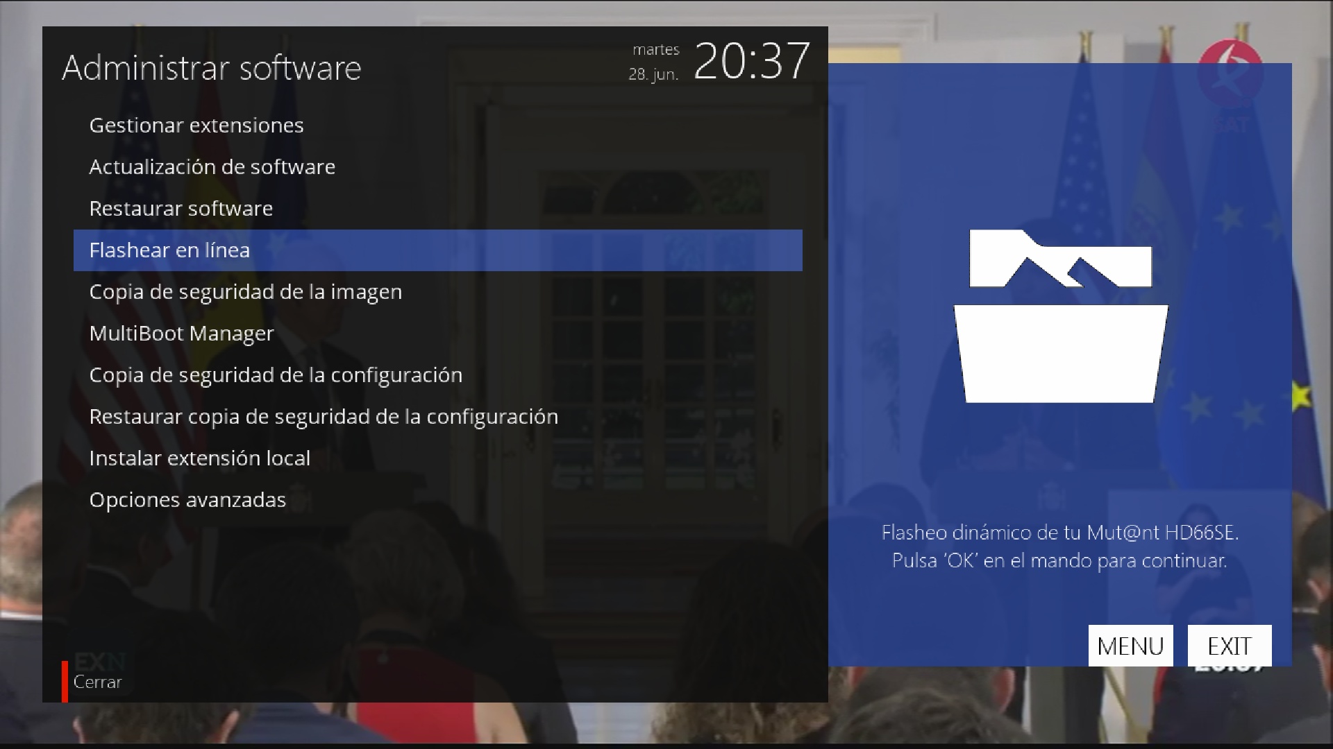 1. Pulsamos en menu + configuracion + Administrador de software + Flashear en linea
