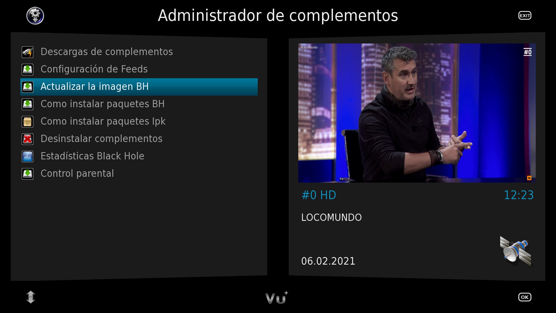 Nueva version blakchole 3.1.0.C para receptores Vuplus, cuya novedad es arreglos en la transparencia de los menus (OSD).