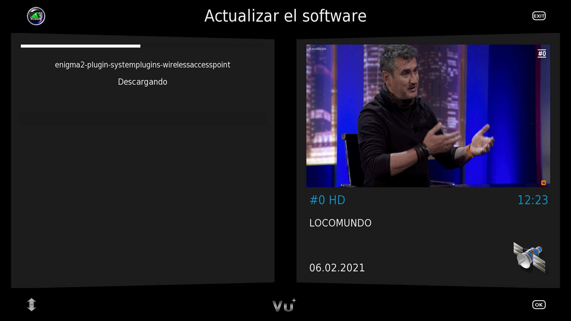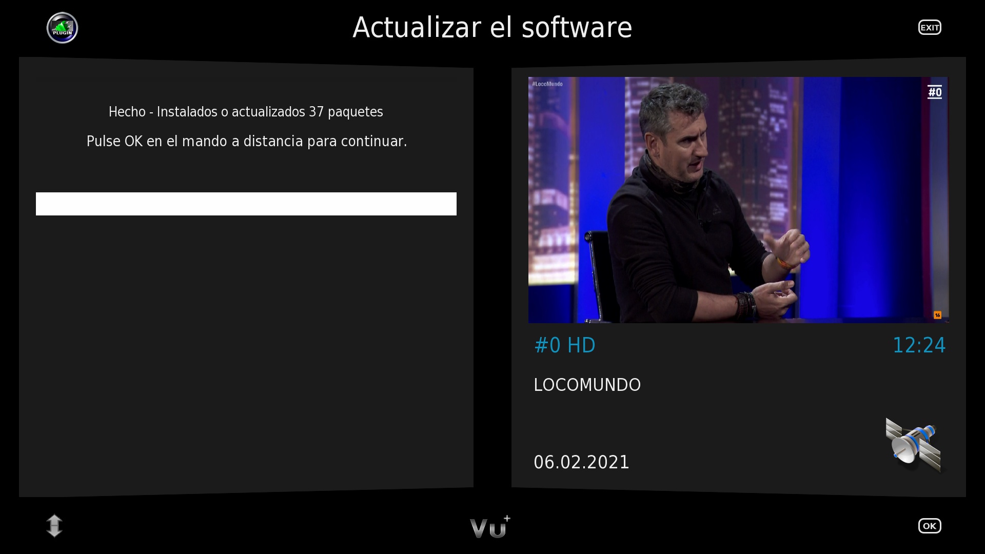 Para realizar la actualizacion del receptor se realiza desde menu que equivale hacer por terminal opkg upgrade, pero es mas comodo desde el menu blakchole: