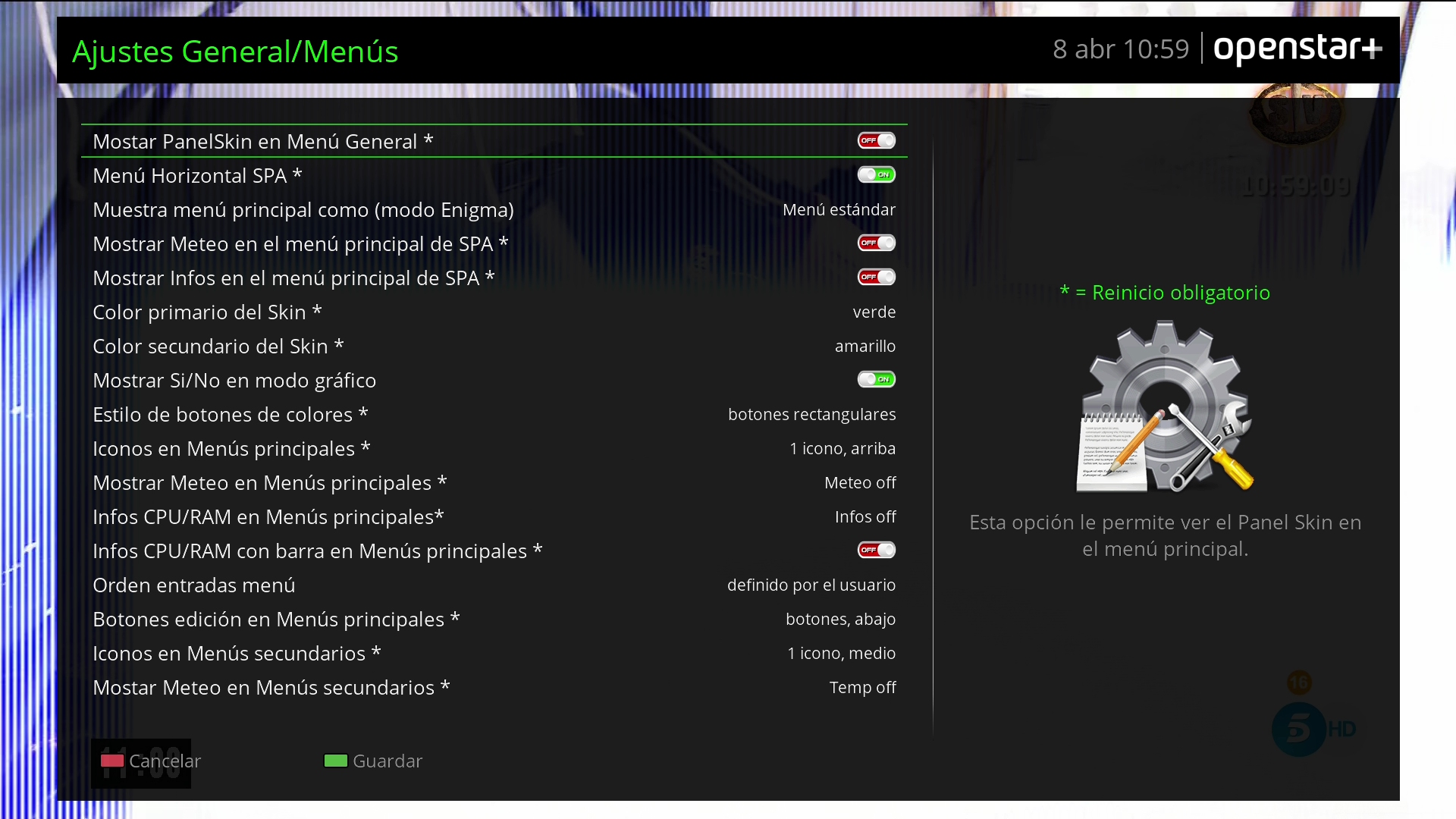 – Actualizado EPG gráfico OpenSPA para que se pueda personalizar la pantalla.