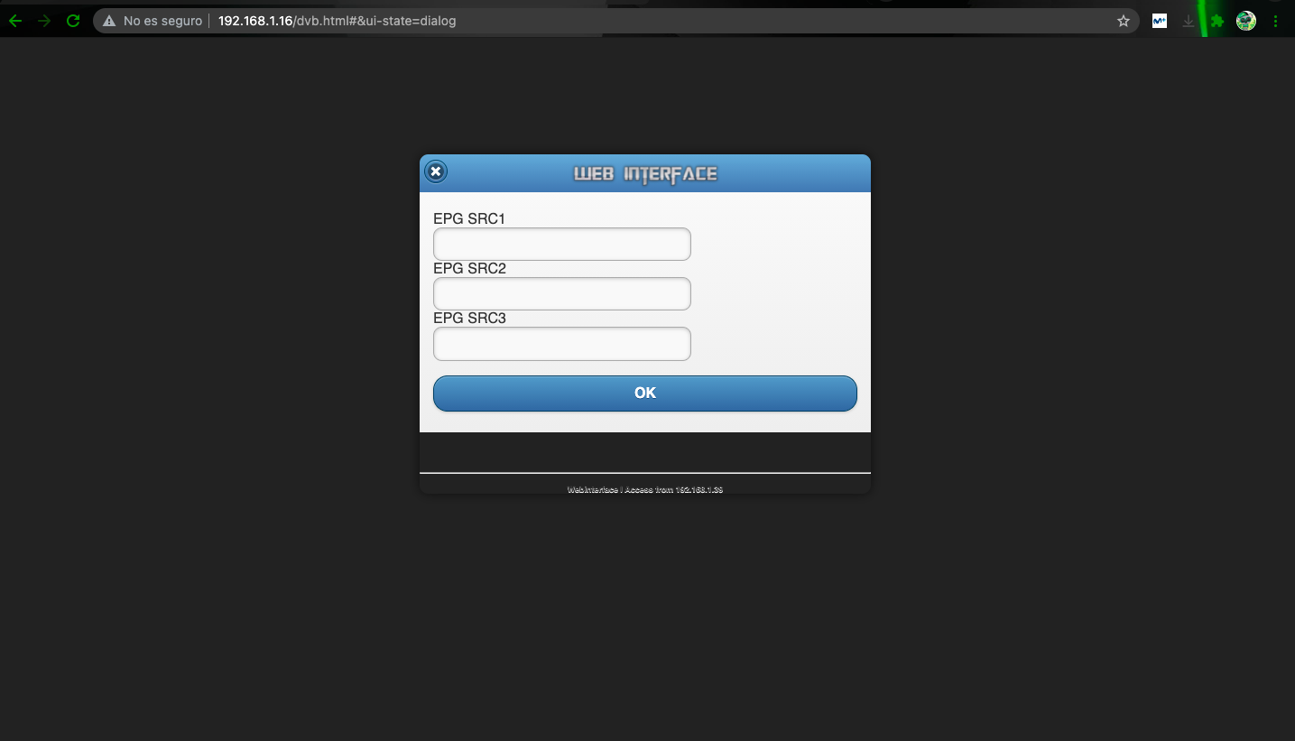 2. WEBIF – Configuración DVB – Fuente EPG incorporada. Fuentes EPG.