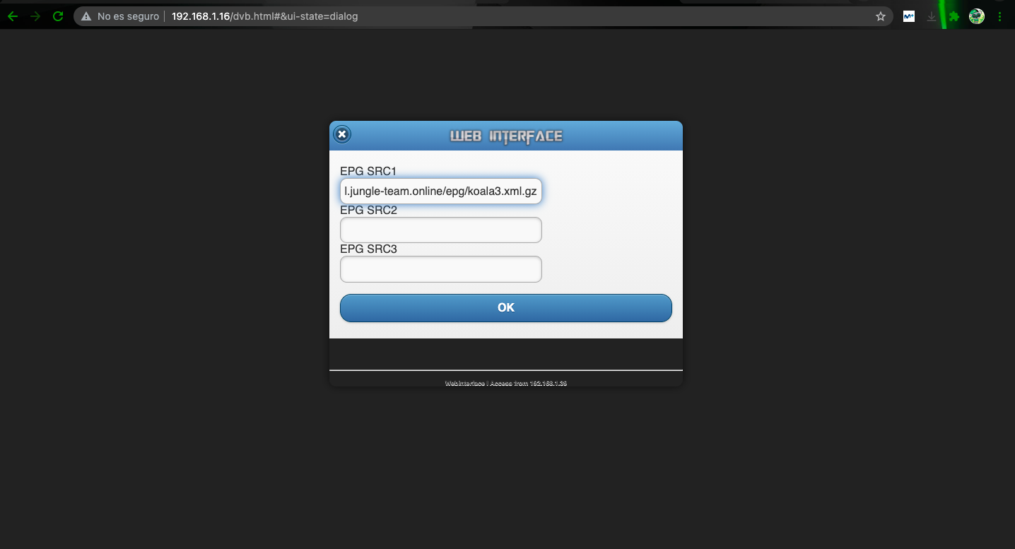 -> WEBIF – Configuración de IPTV – EDEM OK: Fuente EPG 1,2,3. (Tipo: xml.gz)