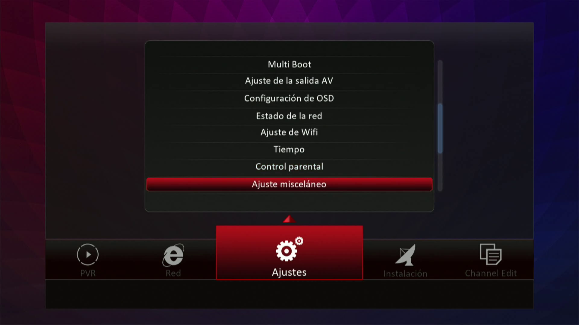Para la instalacion del epg lo podemos realizar desde el menu ajuste miscelaneo
