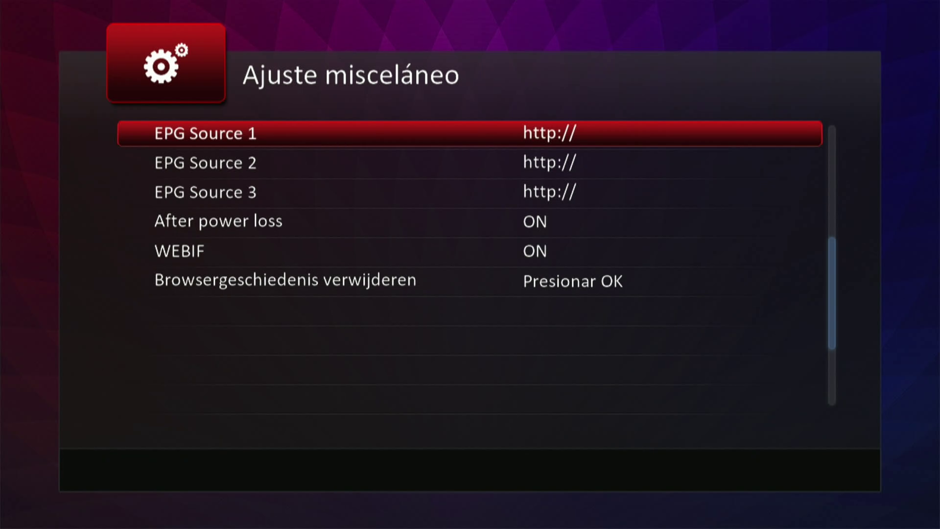 -> Las fuentes EPG se pueden ingresar en WEBIF. (Tipo: xml.gz)