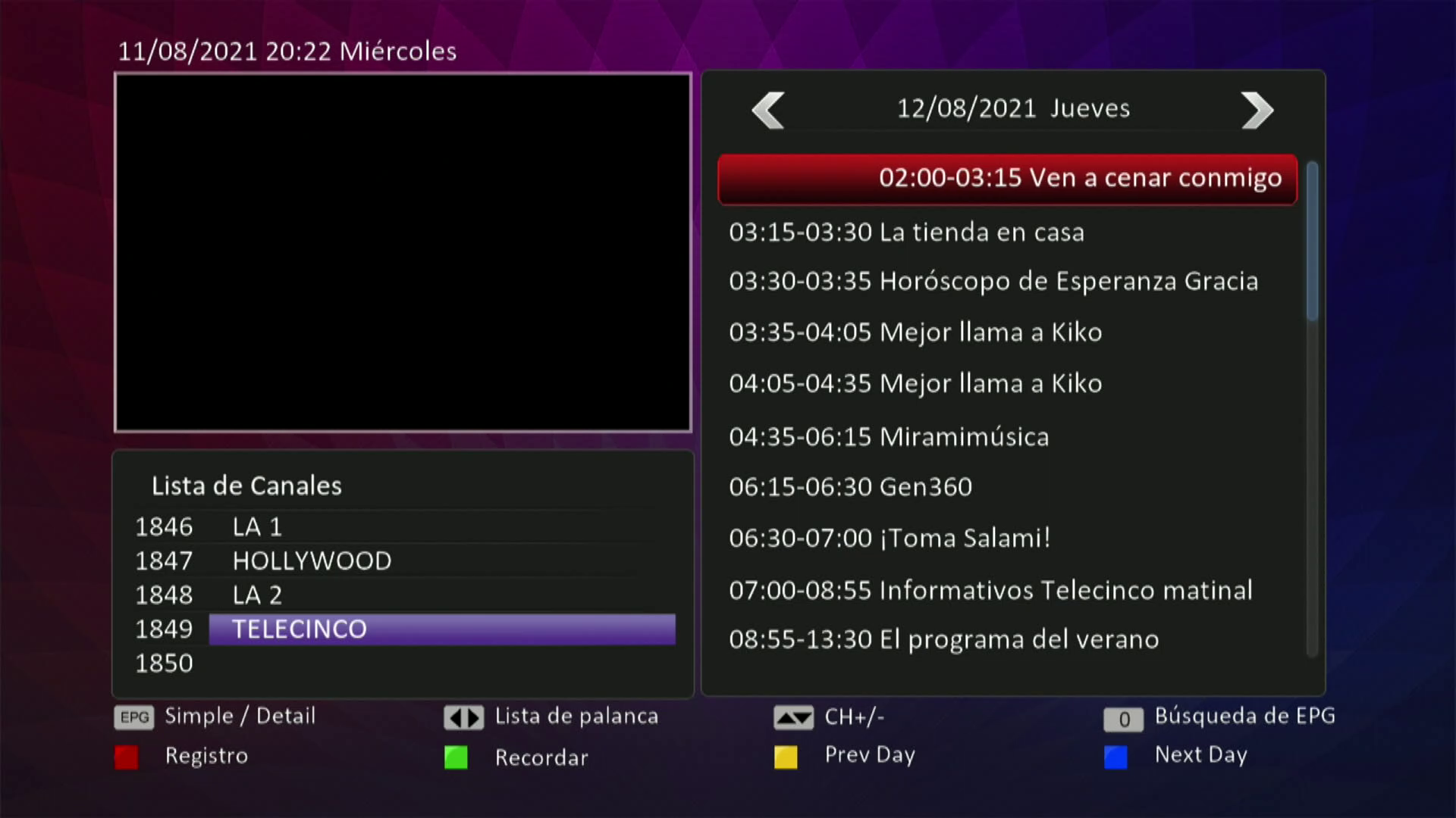Una vez realizado lo recomendado es reiniciar el receptor y ahora conforme vallamos pasando por los canales nos aparecer el epg de varios dias