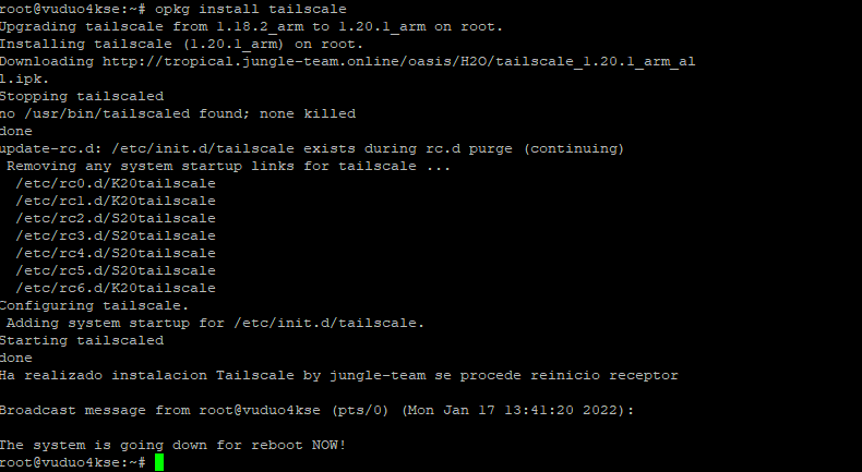 Nueva version Tailscale para receptores enigma2 version 1.20.1, disponible su instalacion a traves de los repositorios jungle-Team, para receptores arm.