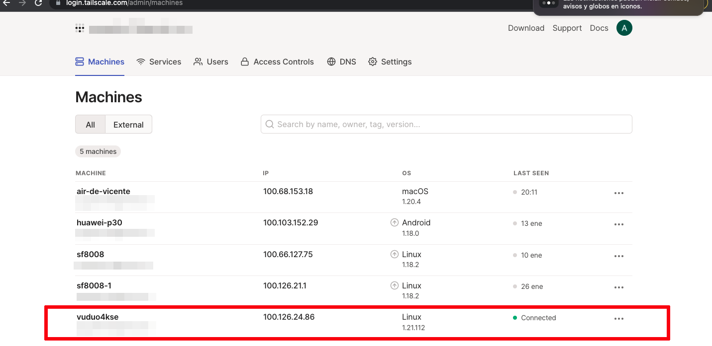 Ya observaremos la nueva version en la web tailscale de nuestro receptor: