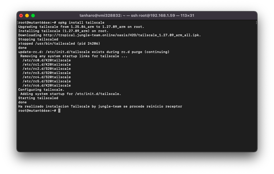Nueva version Tailscale para receptores enigma2 version 1.27.89, disponible su instalacion a traves de los repositorios jungle-Team, para receptores arm.