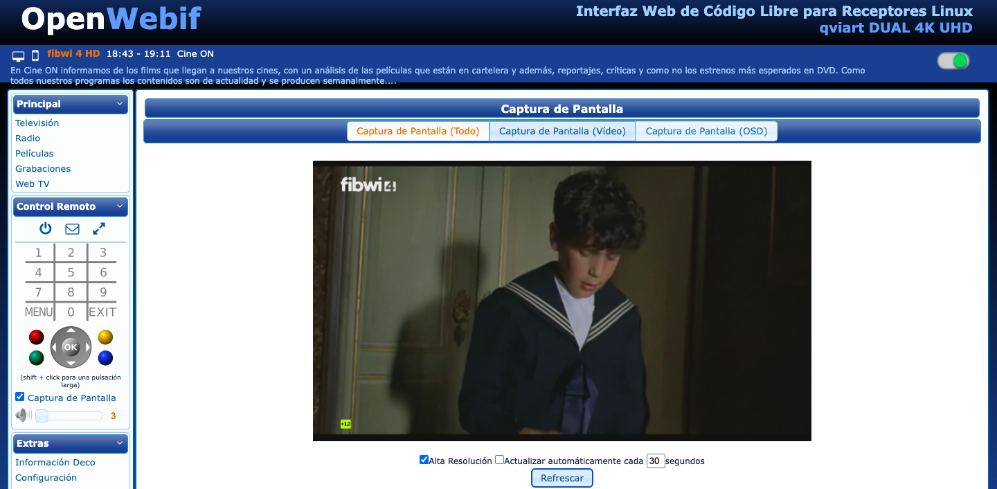 Una vez realizada la instalacion, realizamos un reinicio completo del receptor y ahora ya es funcional el transcoding y capturas de pantalla con video incluido.