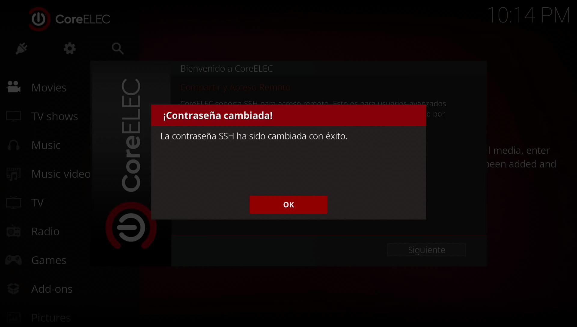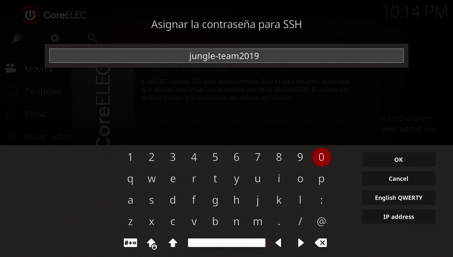 usuario: root password: La que introdujisteis en la primera configuracion de coreelec |