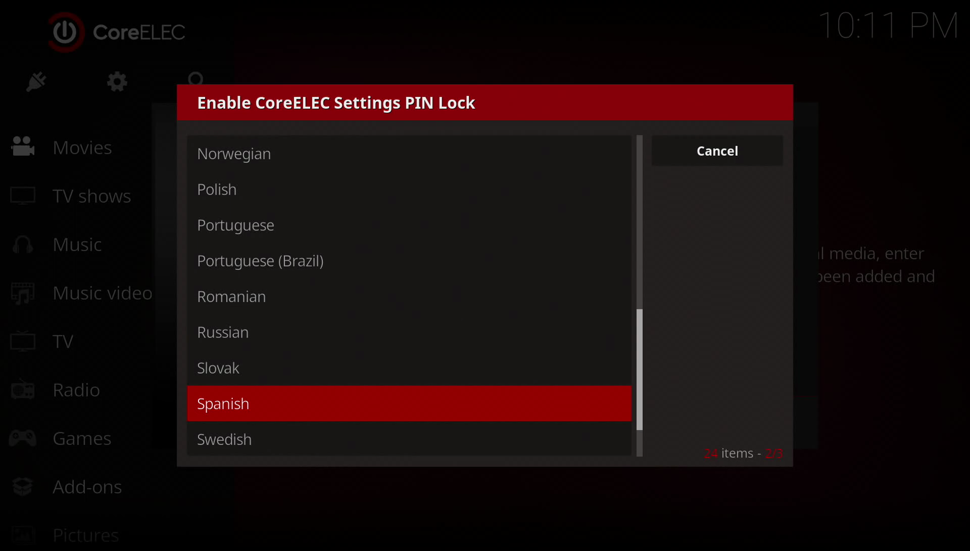 1. En primer lugar seleccionamos el idioma del osd es decir de los menus de coreelec