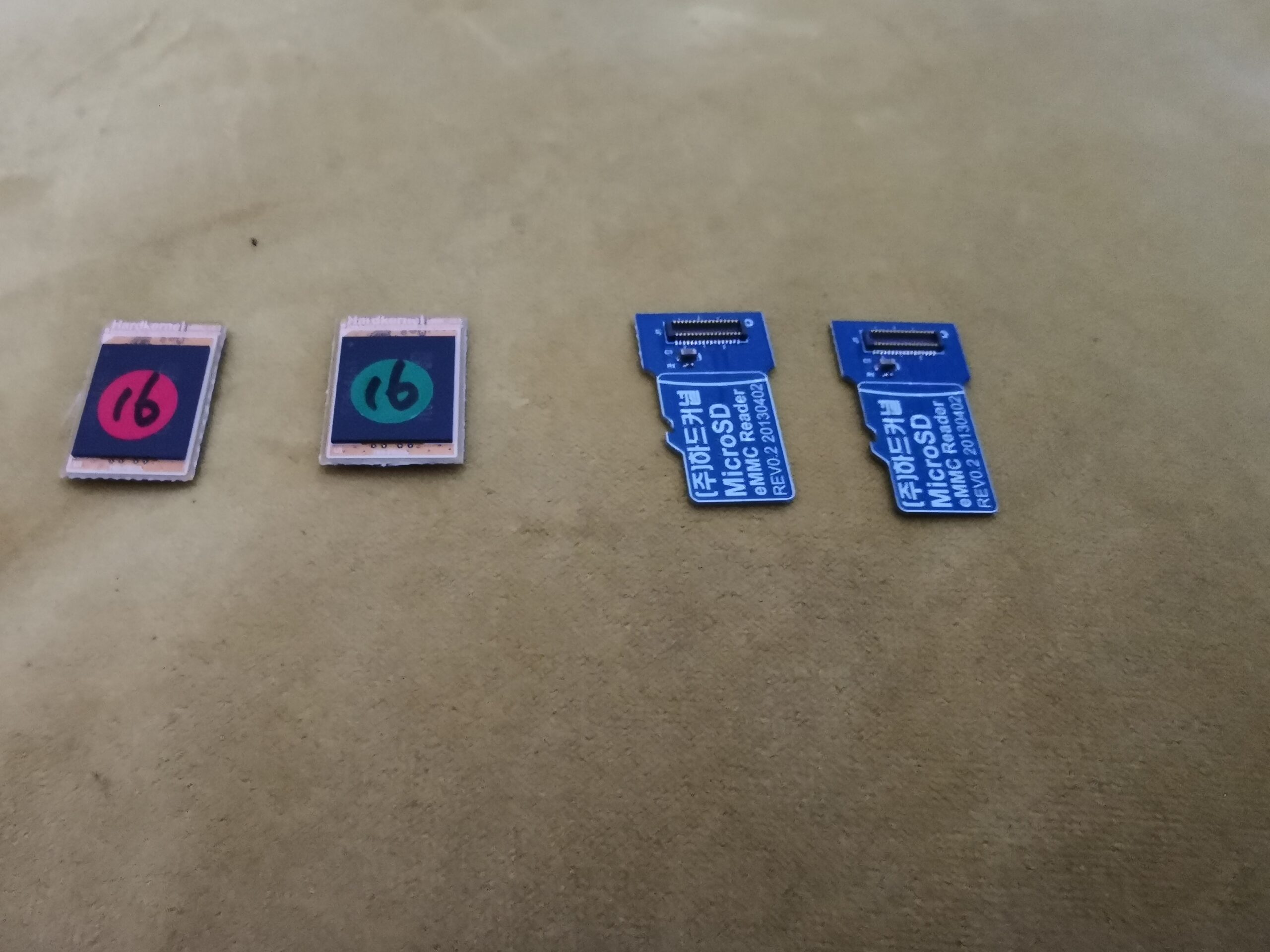 Dos memorias internas emc de 16 Gb junto con dos modulos de escritura para instalar sistemas operativos en las memorias emc