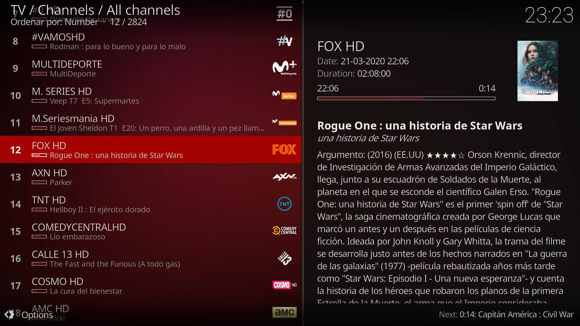 Y se nos ha instalado ademas lista canales dividida por categorias, apareciendonos los canales de movistar+ automaticamente mapeados con el epg-koala