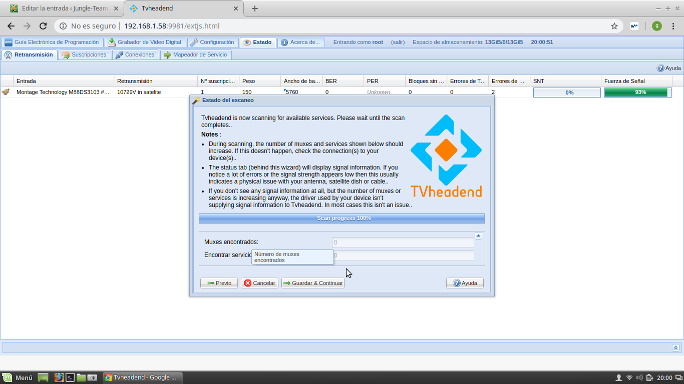 Nota: Antes de realizar la restauracion copia de seguridad de Tvheadend se renombra a old.tvheadend la version que estuvieramos usando para en caso existir algun problema