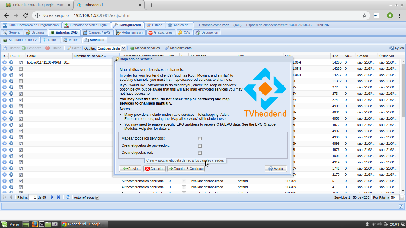 Nota importante: Tras realizar este proceso, necesitaremos nuevamente reiniciar el capturador interno koala-epg desde el webif de tvheadend.