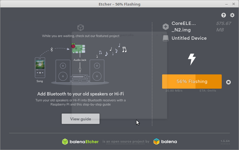 Ahora debemos instalar el sistema Coreelec en nuestra tarjeta microSD que tenemos insertado en nuestro pc, para ello vamos a usar el programa etcher que lo podemos descargar de su web oficial: https://www.balena.io/etcher/ una vez descargado vamos a realizar los siguientes pasos.