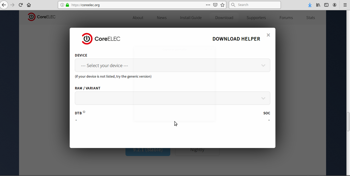 Accedemos a la web oficial de descarga de Coreelec: https://coreelec.org/