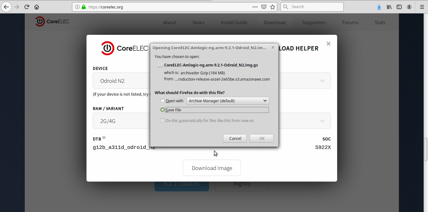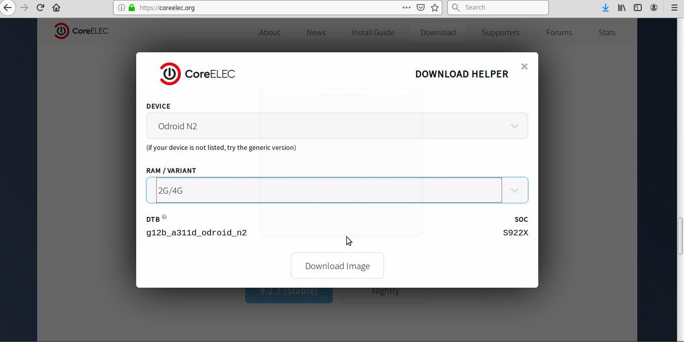 Para finalizar pulsamos sobre download image para descargar Coreelec en nuestro pc.