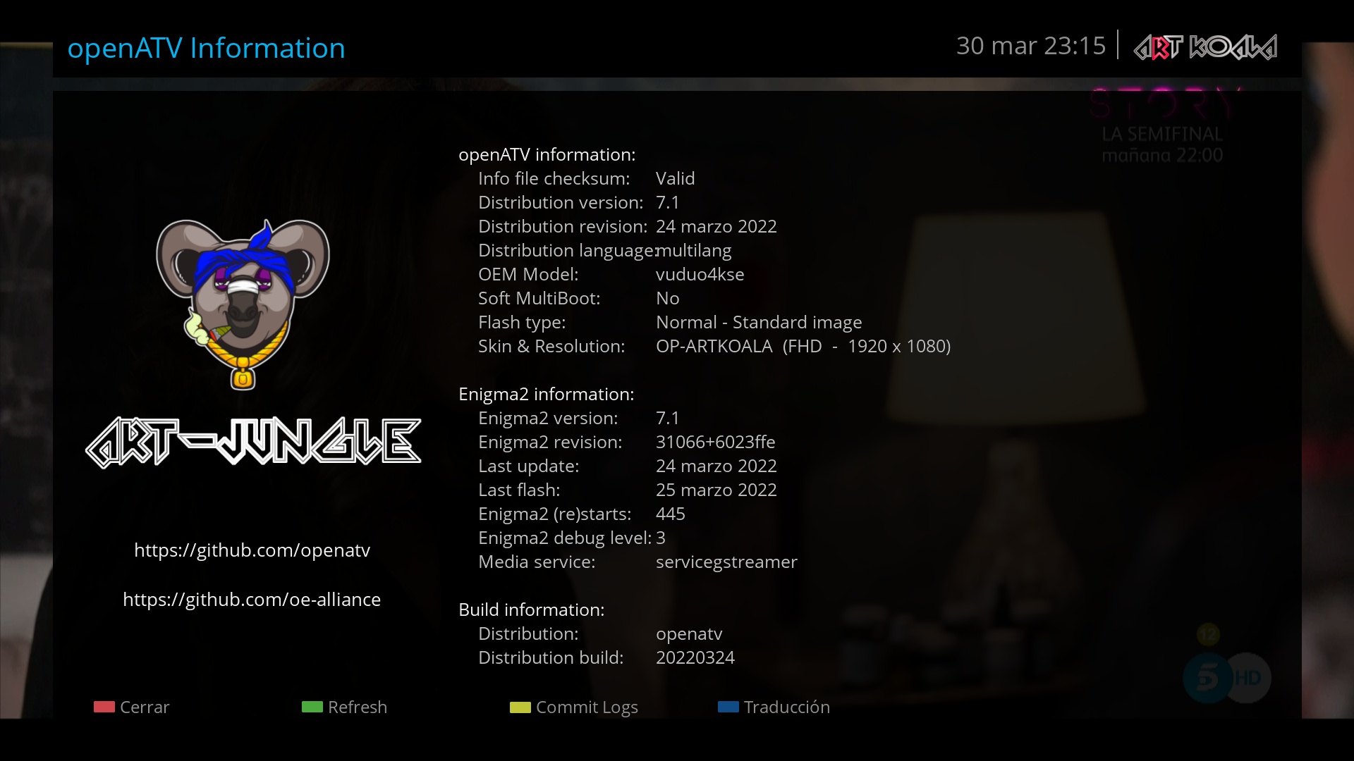 Nueva version 4.1 de OP-ARTKOALA skin enigma2 para imagen OpenATV, modificación realizada por Jungle-team de OpenStarHD.