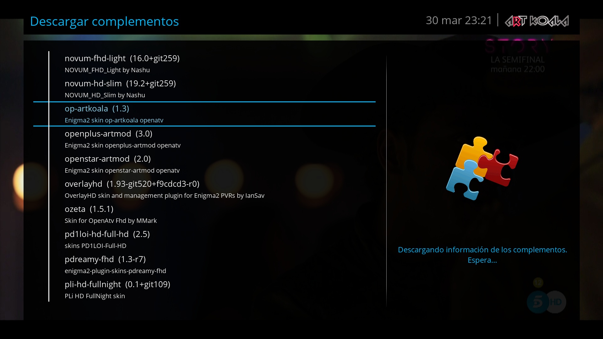 enigma2-plugin-extensions-atilehd (necesario para el funcionamiento del setup OP-ARTKOALA, normalmente esta instalado predeterminado en openatv)