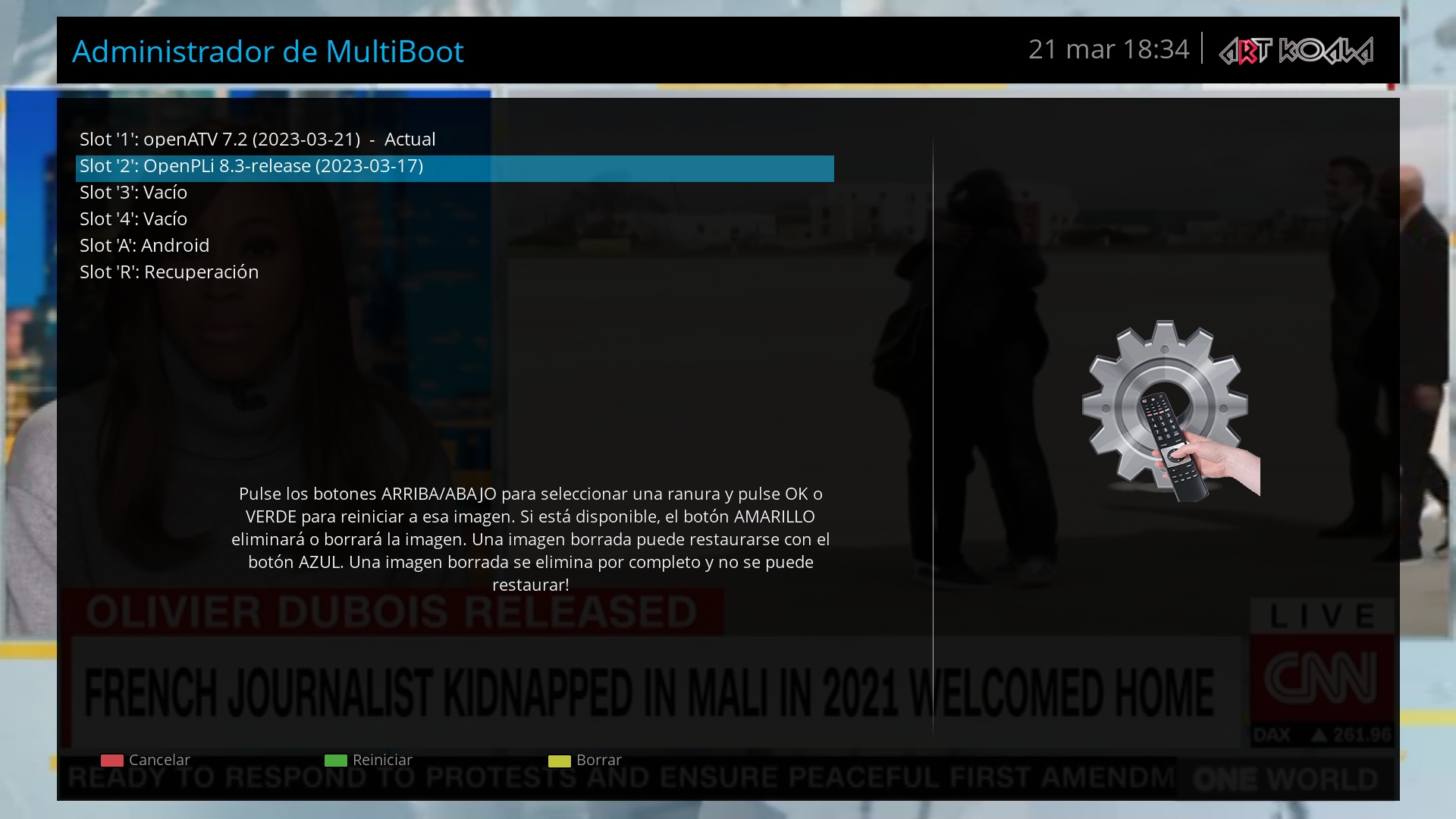 Tras seleccionar las screen que deseemos pulsamos boton exit, y luego en la pantalla inicial boton verde para aplicar cambios, nos solicitara reniciar el receptor, pulsamos en si y eso seria todo.