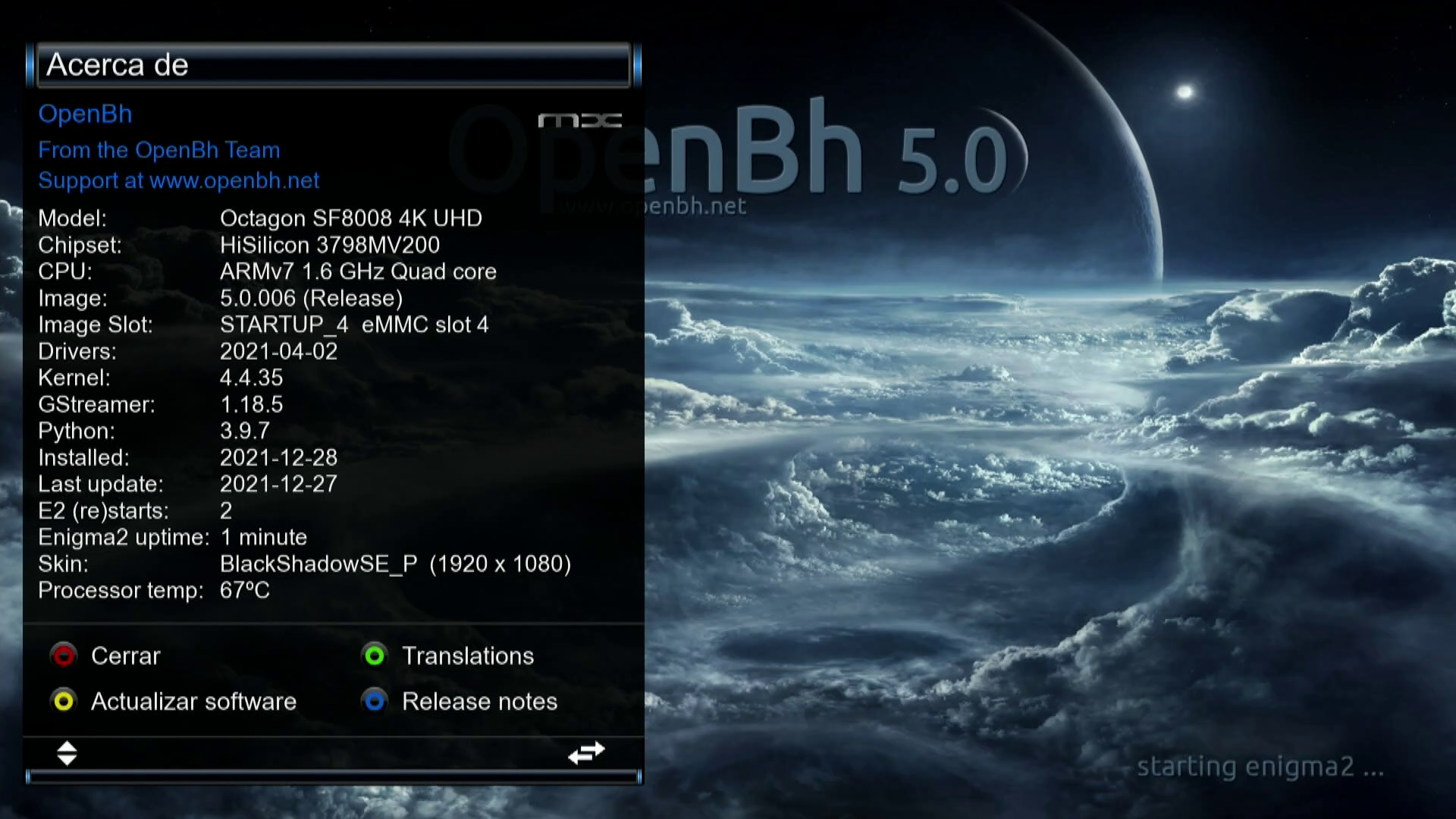 La imagen OpenBH 5.0 disponible para la instalacion en receptores Octagon SF8008 esta basada en el desarrollo de python 3 de openatv, por lo que sus novedades en este sentido son las mismas que openatv 7.0 basandose en el entorno de compilacion de imagenes 5.0 en oe-alliance, actualizando el sistema de compilacion de yocto en versiones 3.3 y 3.4