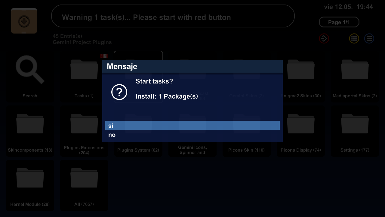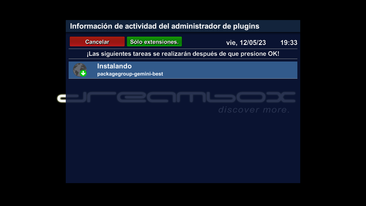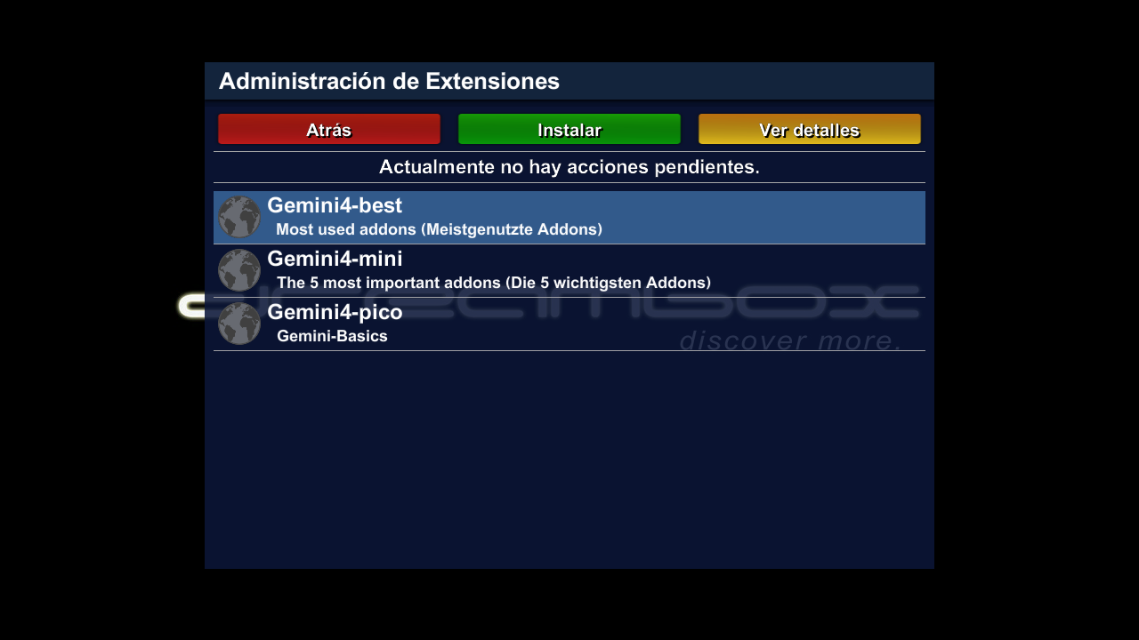 Al finalizar reiniciamos receptor, y ahora al pulsar boton azul ya accederemos al blue panel gemini