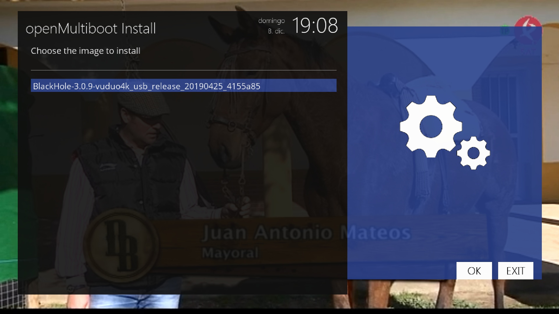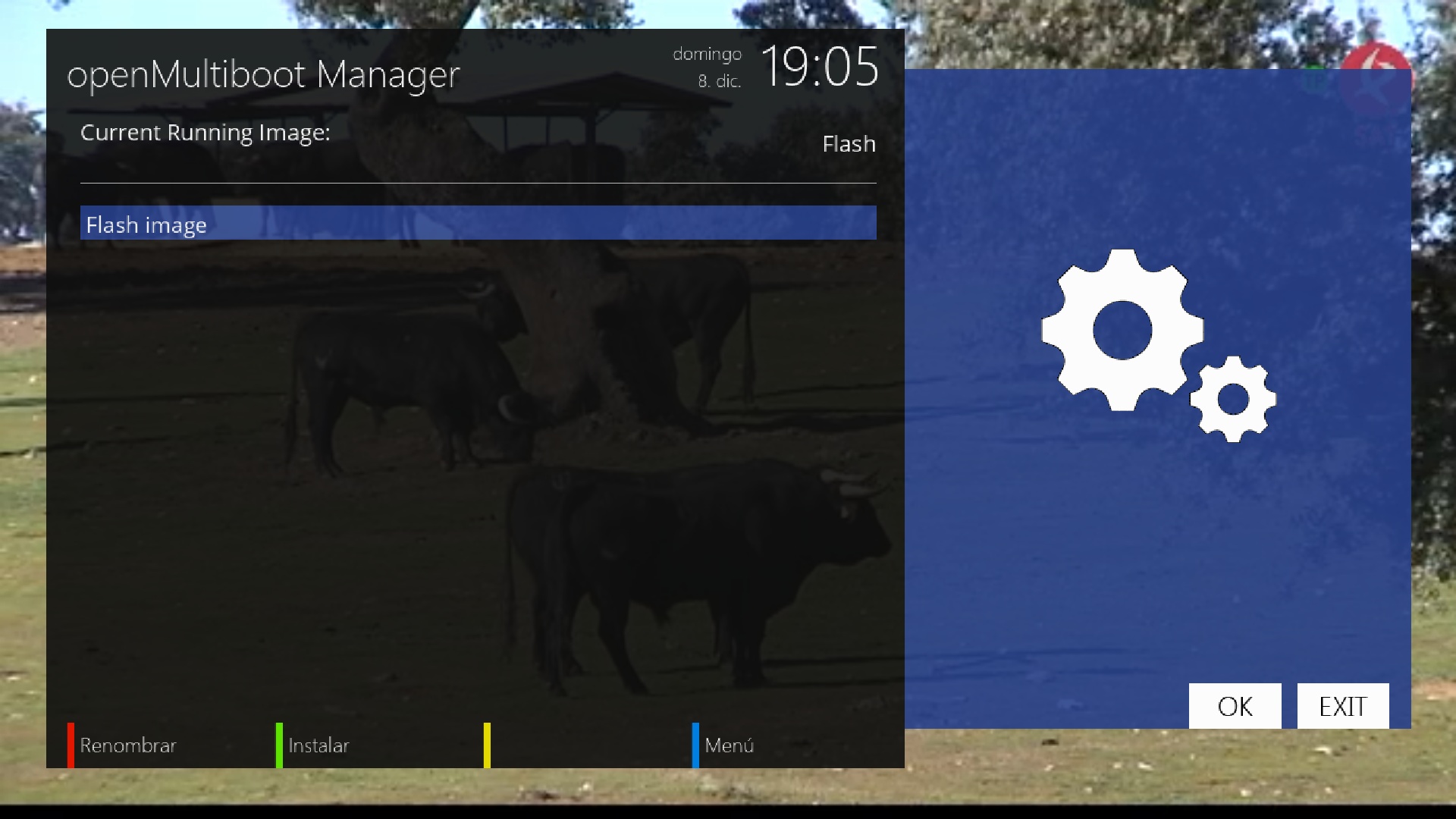 Ahora en el menu principal del plugin openmultiboot pulsamos boton verde para seleccionar la imagen a instalar (las que tengamos en el directorio open-multiboot-upload)