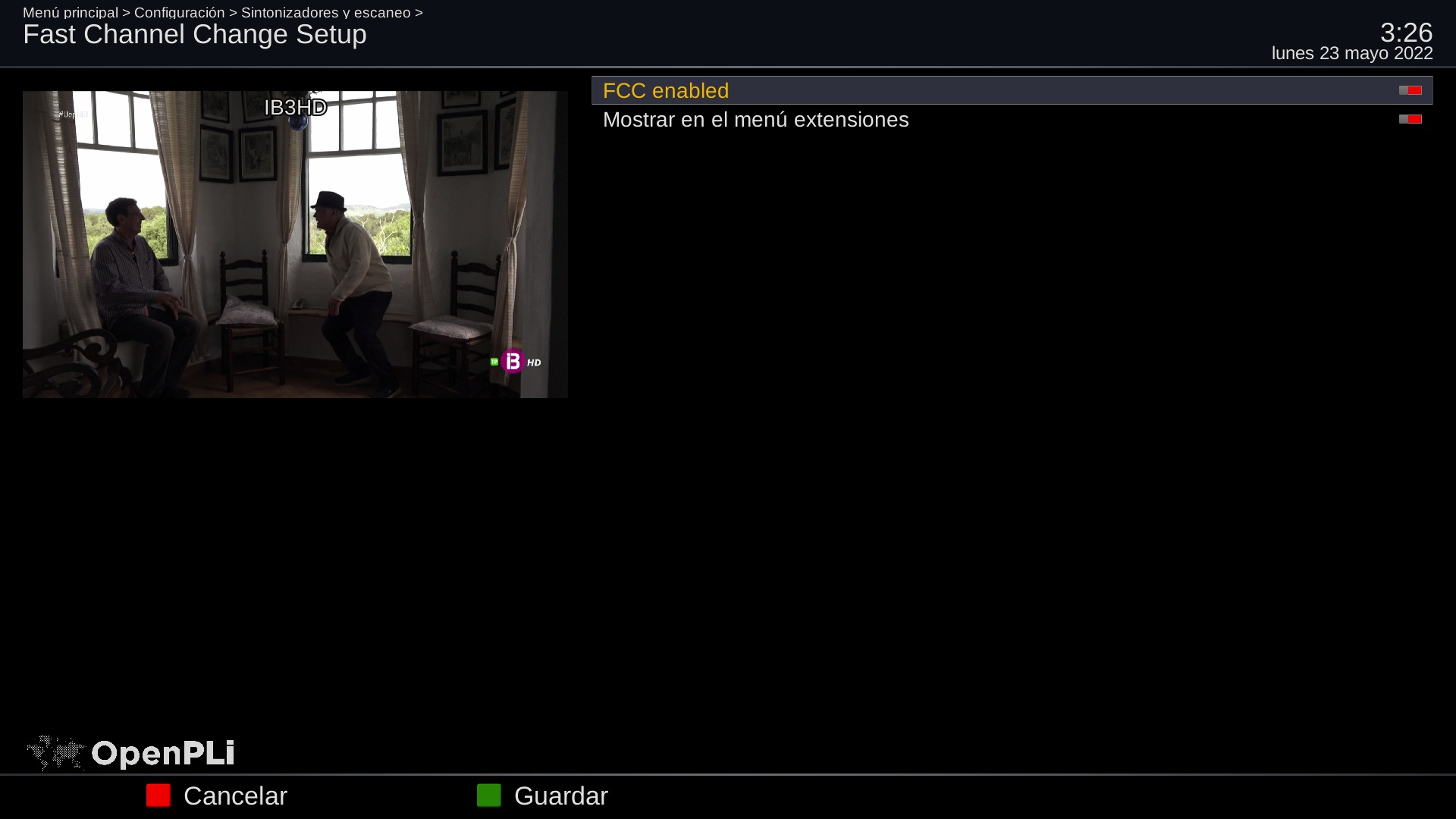Por defecto en receptores vuplus compatibles viene instalado por defecto la opcion cambio rapido de canales FCC, cuyo plugin se llama enigma2-plugin-systemplugins-fastchannelchange, el cual como hemos mencionado se halla instalado y se accede a traves de menu + configuracion + sintonizadores y escaneo + Fast Channel Change
