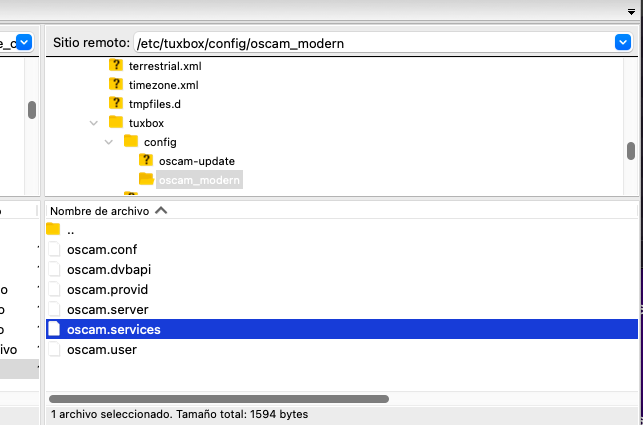 A continuacion introducimos estos archivos en el directorio /etc/tuxbox/config/oscam_modern