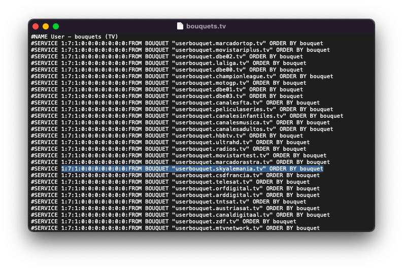 a) abrimos el archivo /etc/enigma2/bouquet.tv y copiamos los datos relativos al favorito que deseamos convertir en este ejemplo: