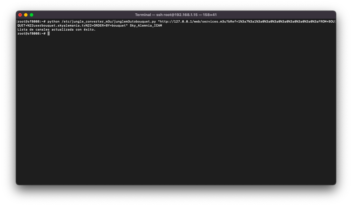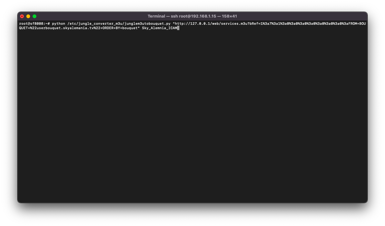 python /etc/jungle_converter_m3u/junglem3utobouquet.py "http://127.0.0.1/web/services.m3u?bRef=1%3a7%3a1%3a0%3a0%3a0%3a0%3a0%3a0%3a0%3aFROM+BOUQUET+%22userbouquet.skyalemania.tv%22+ORDER+BY+bouquet" Sky_Alemnia_ICAM