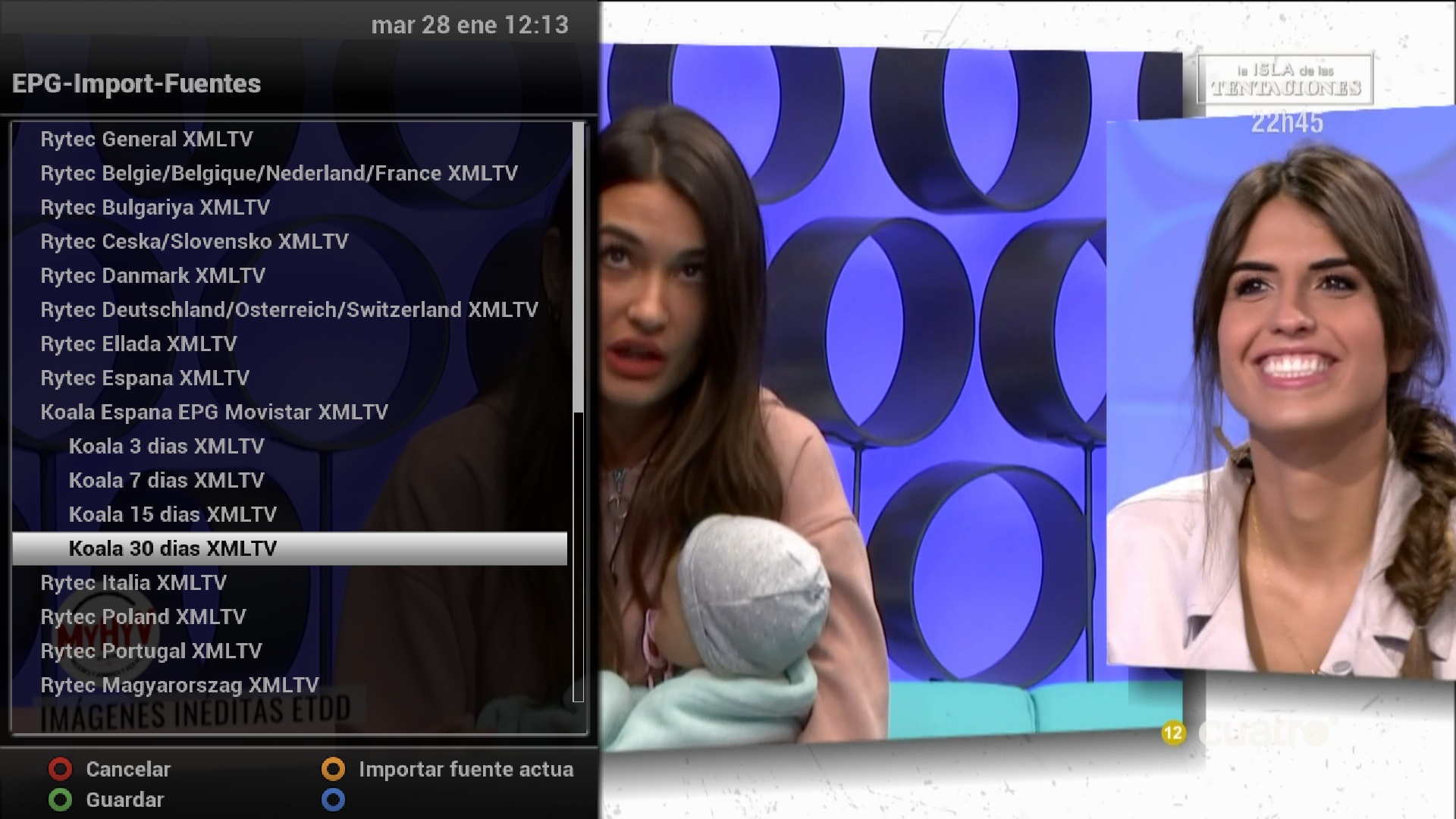 Por defecto ya viene predefinido el source koala para movistar+ de jungle-team, pues marcamos los dias que queremos de epg