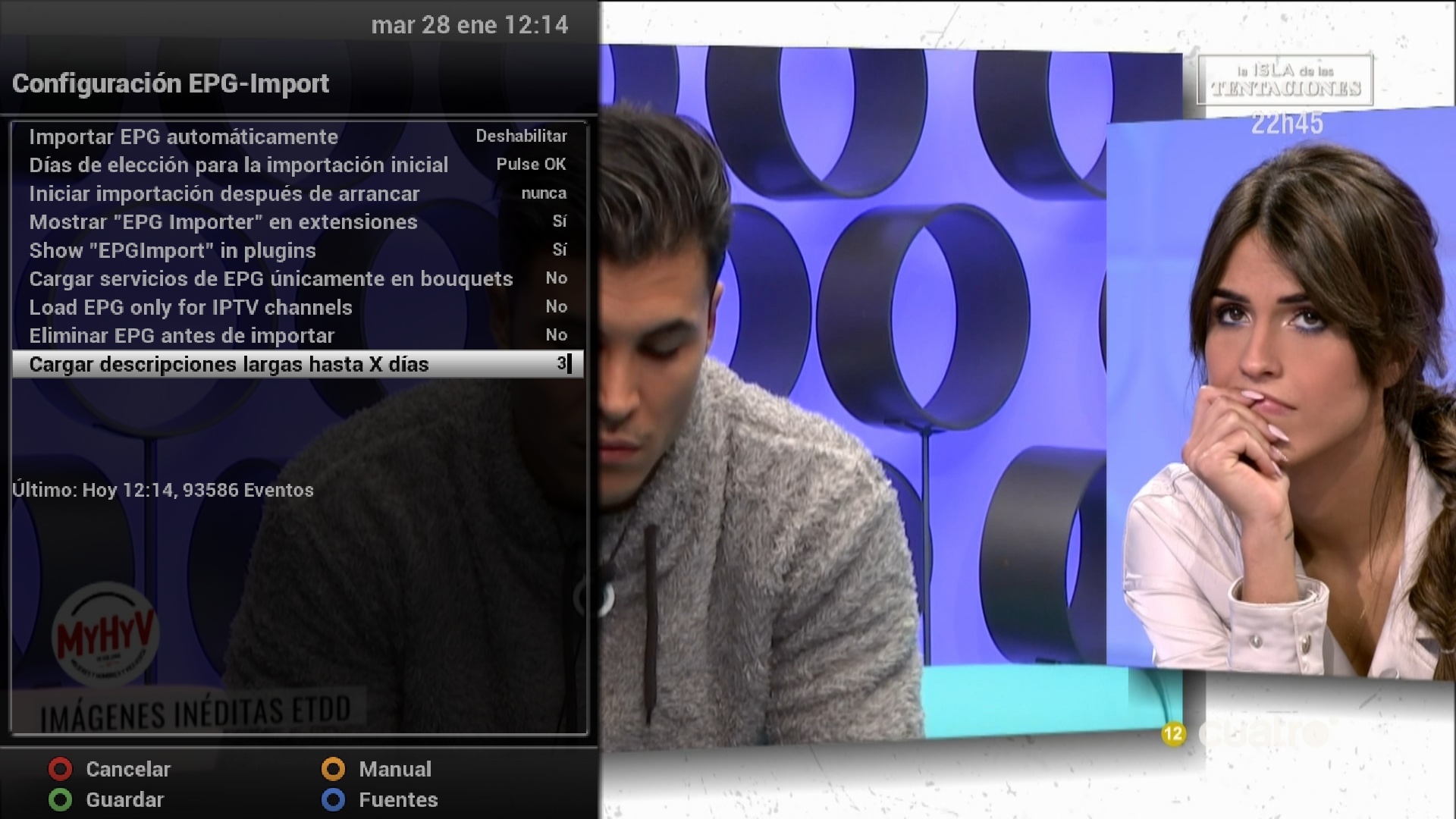Para finalizar pulsamos boton amarillo para la descarga epg y tras unos segundos aparecera que ha terminado