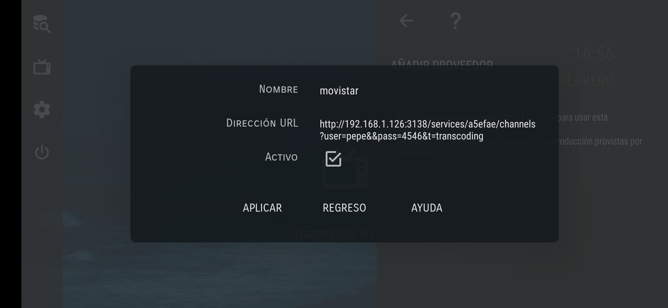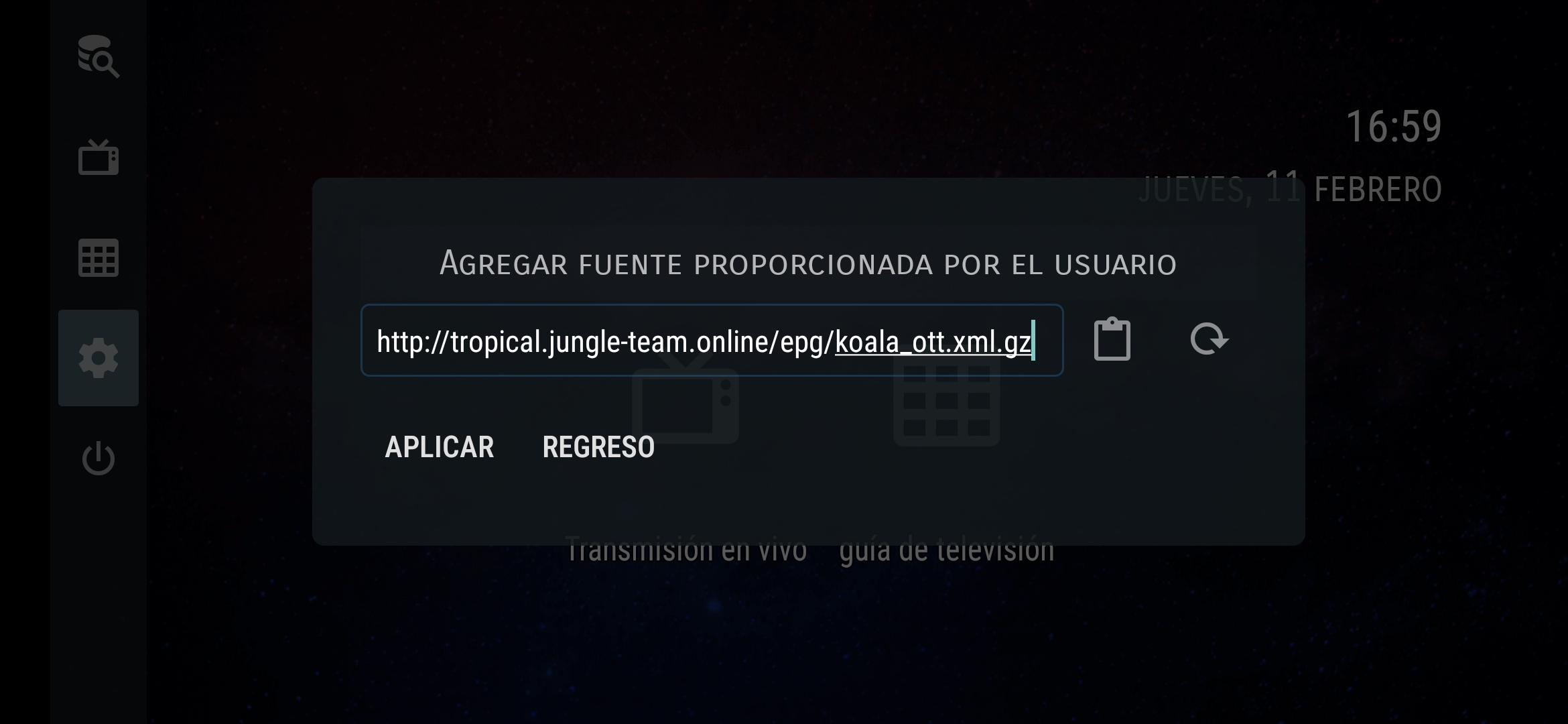 Introducimos la url de epg koala realizada para ott navigator y pulsamos sobre aplicar