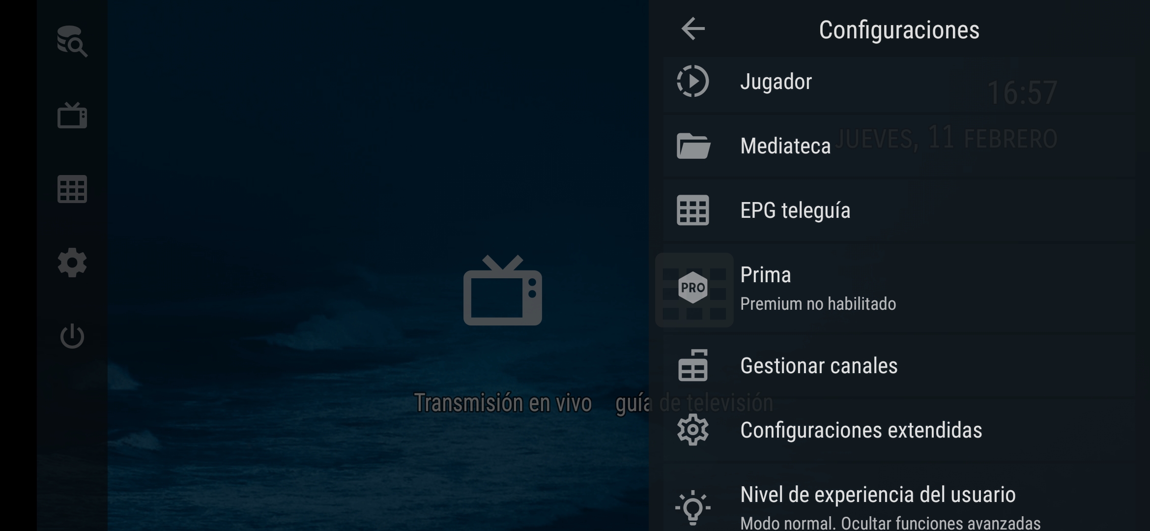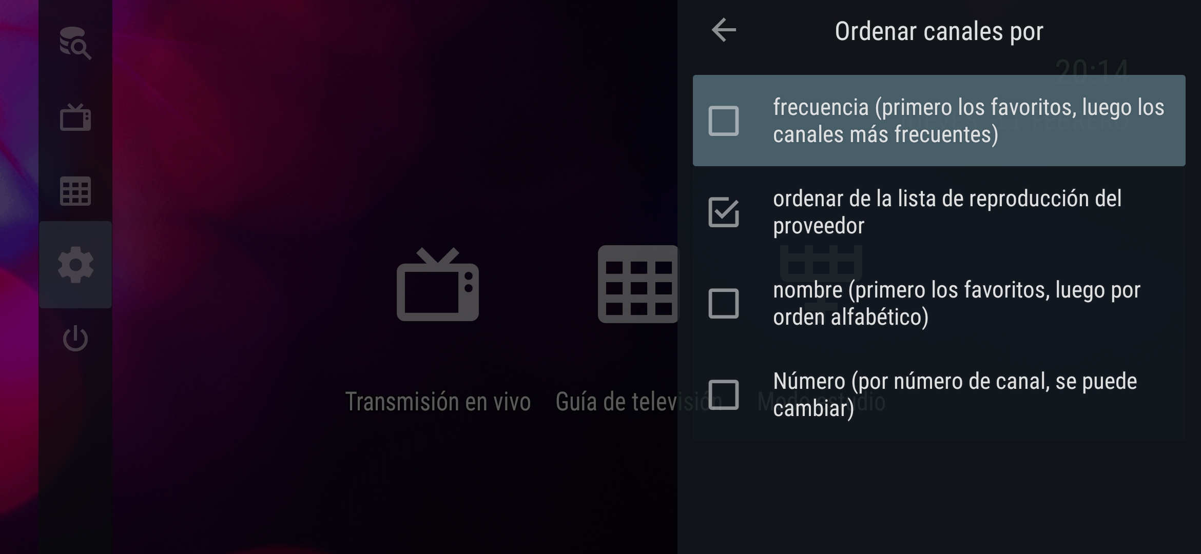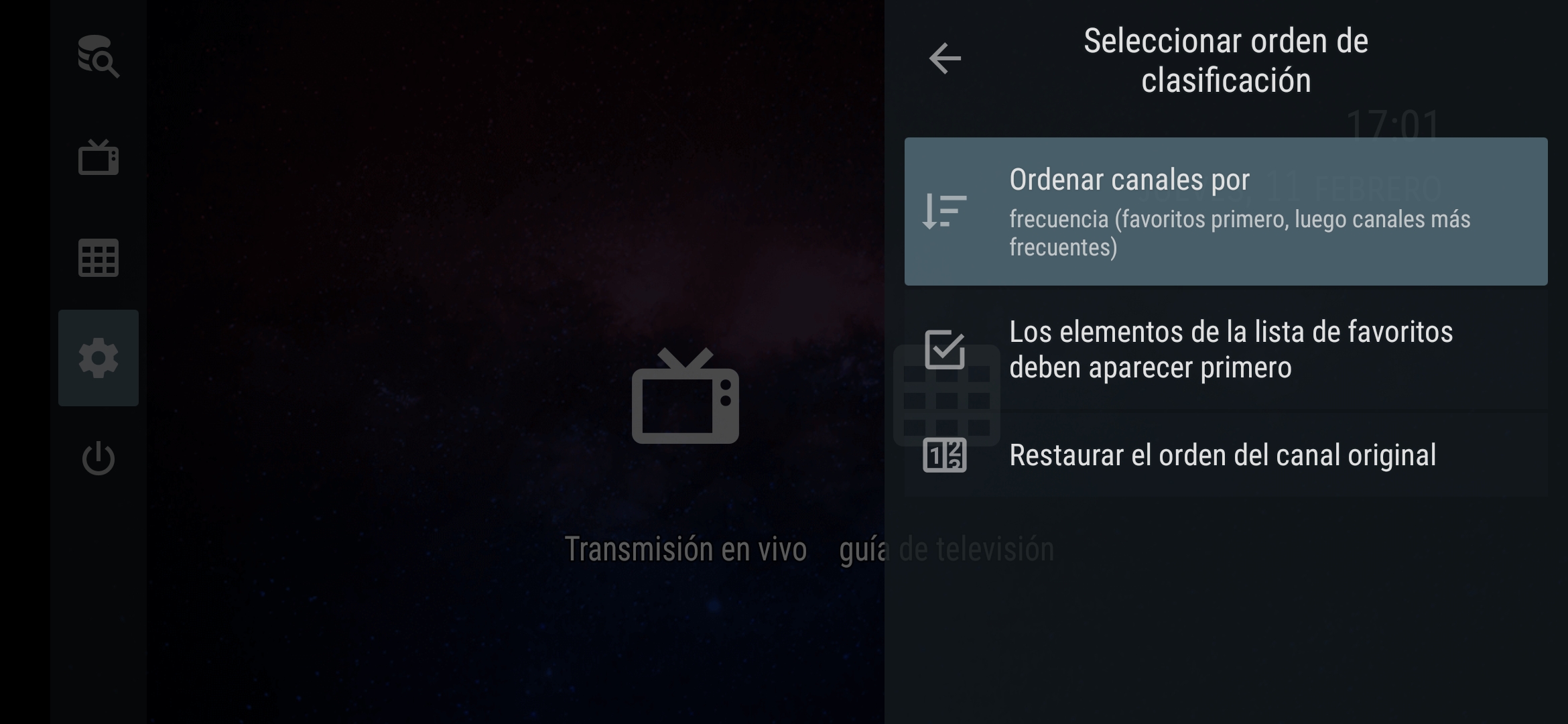 A continuacion para que el orden de los canales sea el mismo que el de nuestra lista m3u pulsamos en configuracion
