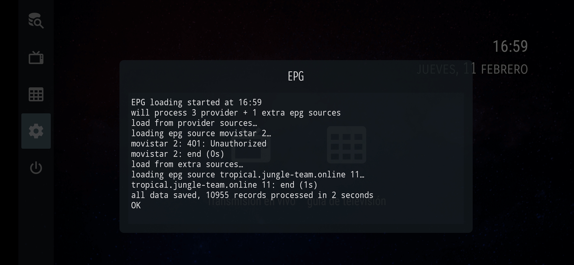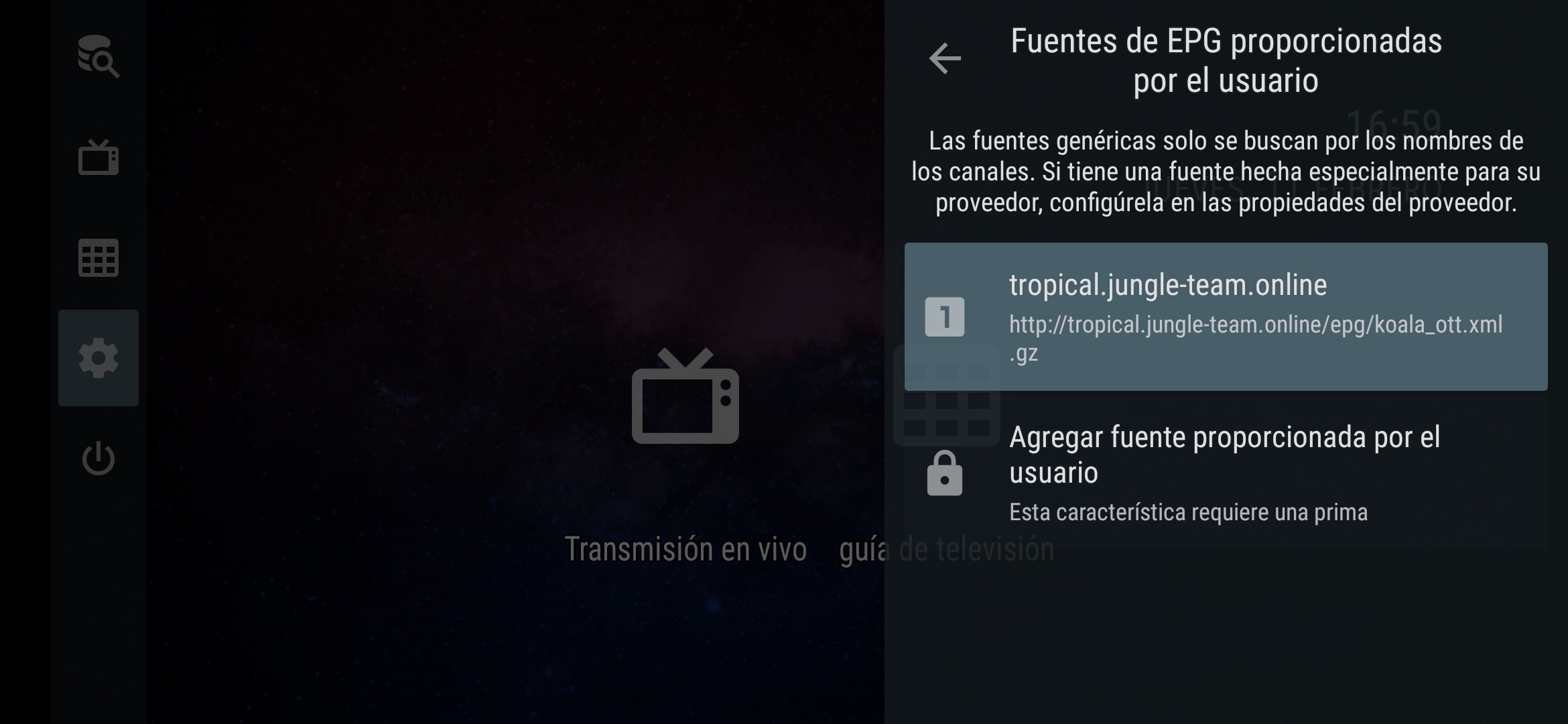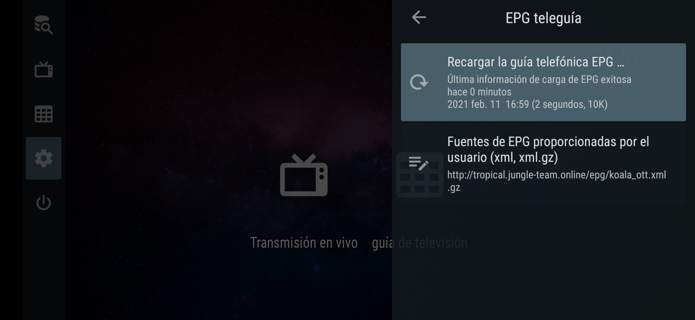 Ahora pulsamos EPG Teleguia para añadir el epg koala