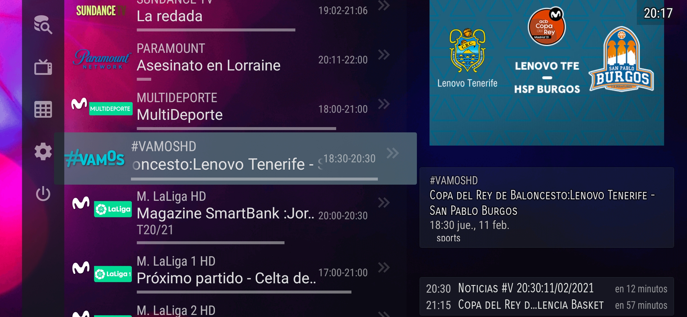 Para finalizar pulsamos en Transmision en vivo y nos aparecera nuestro epg y las caratulas fanarts
